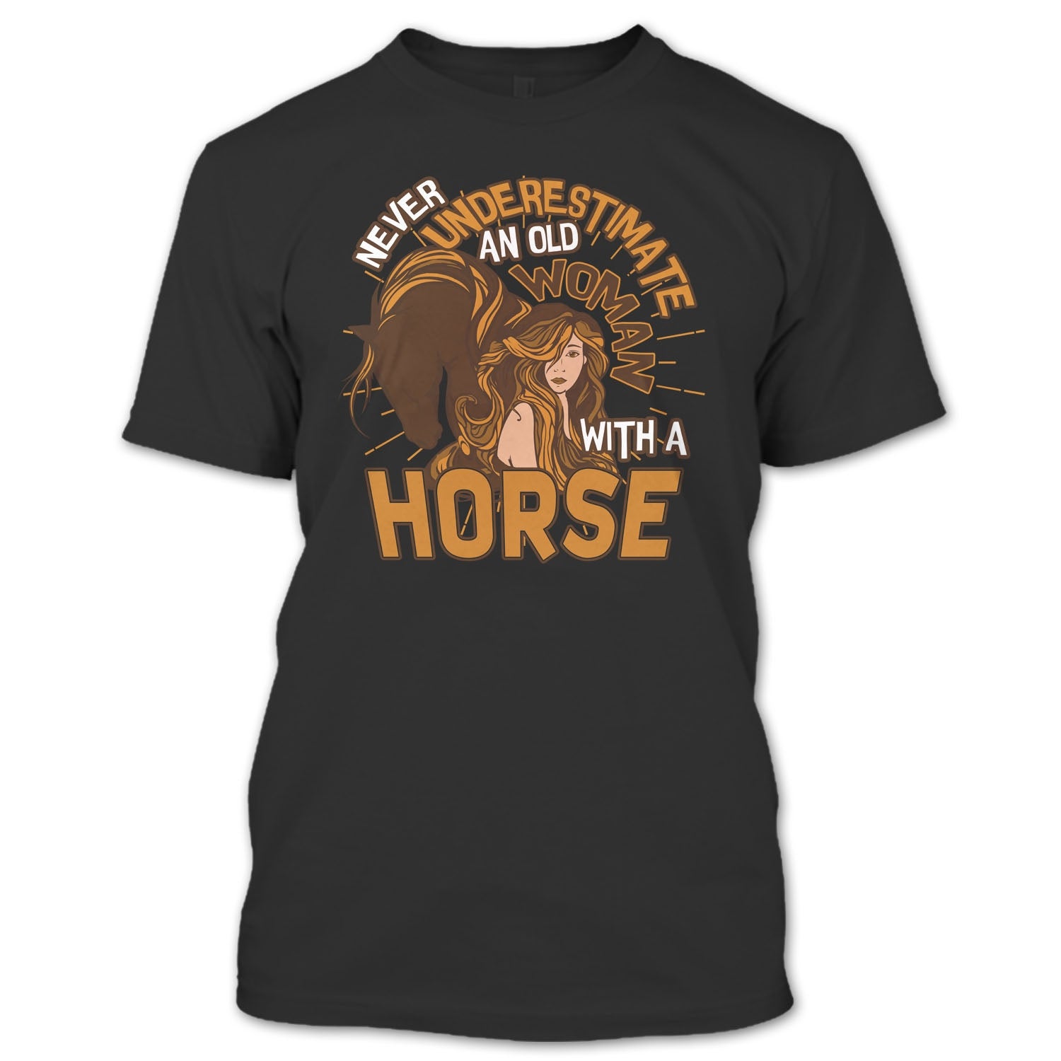 Never Underestimate T Shirt, Old Woman With A Horse T Shirt