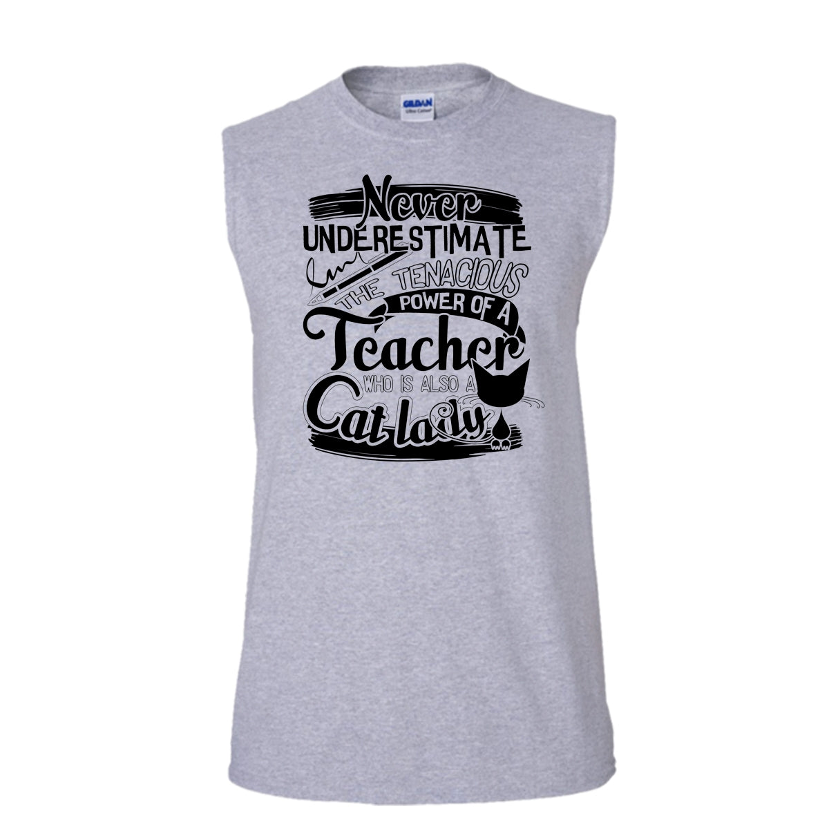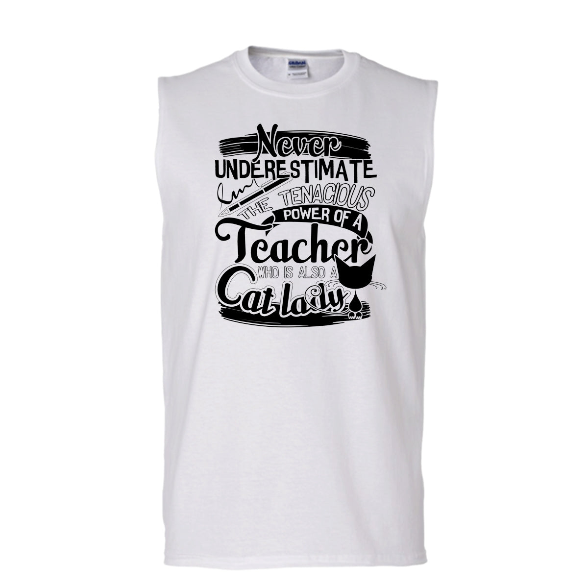 Never Underestimate T Shirt, Who Is Also A Cat Lady Tank Top (Men's Cotton Sleeveless)