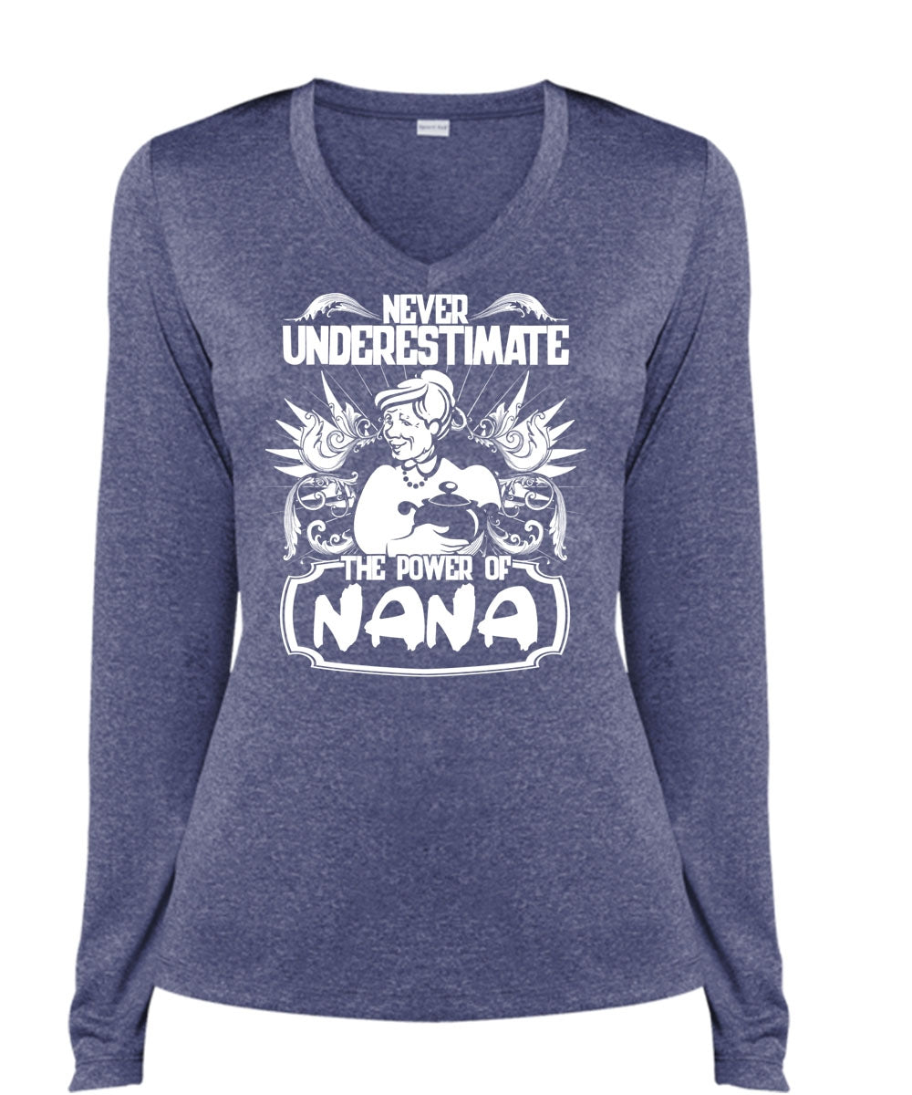 Never Underestimate The Power Of Nana T Shirt, Being A Nana T Shirt, Cool Shirt (Ladies LS Heather V-Neck)