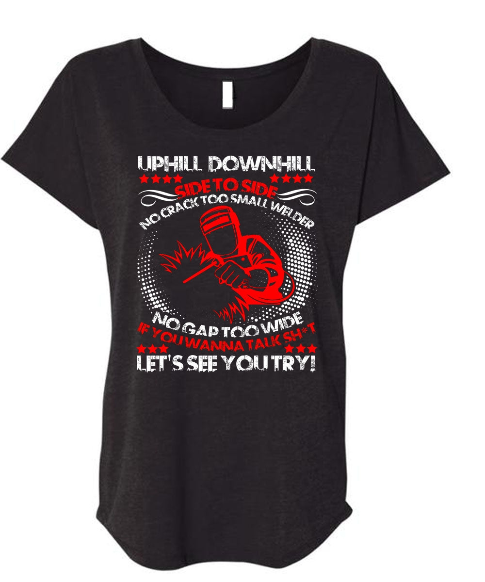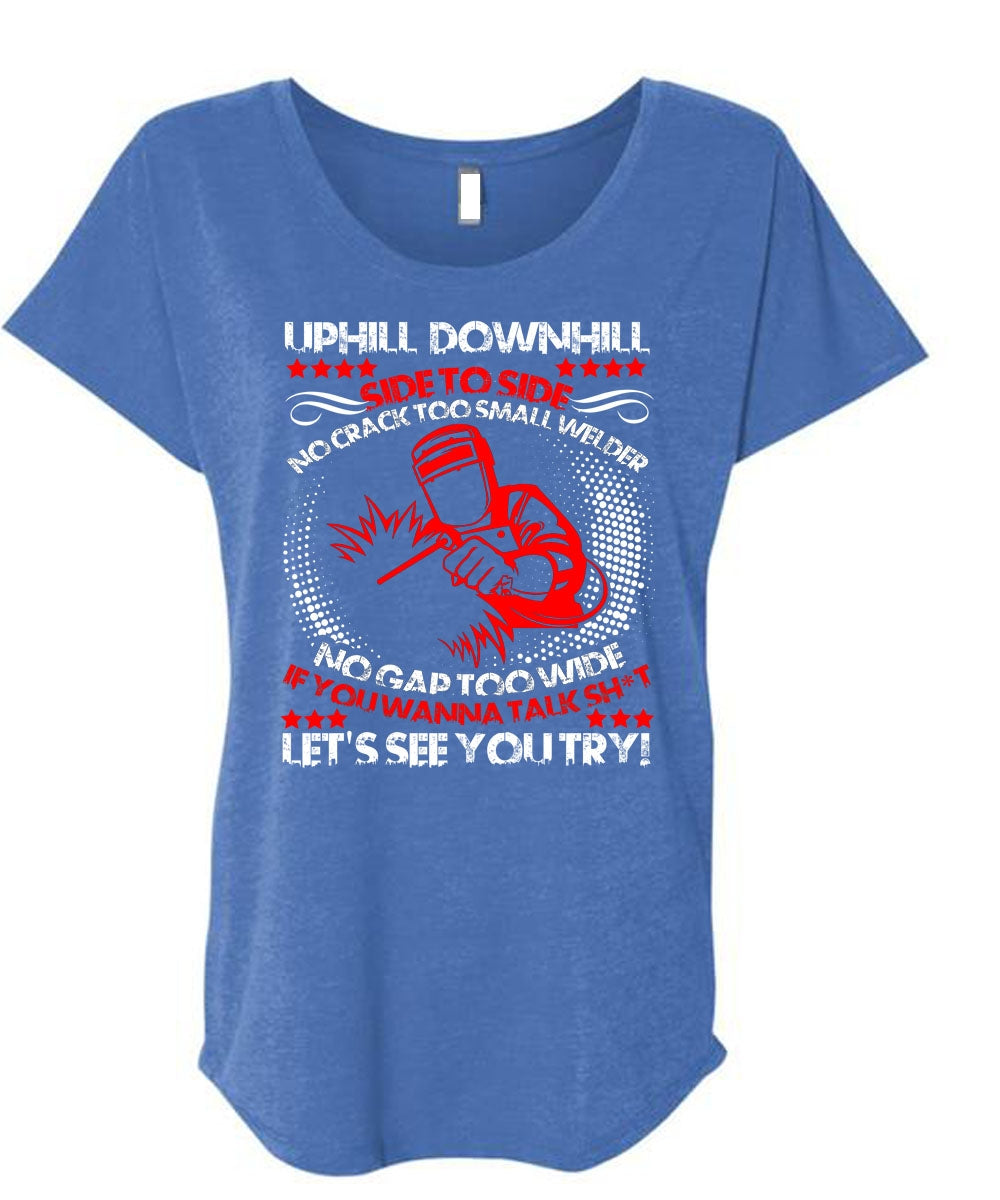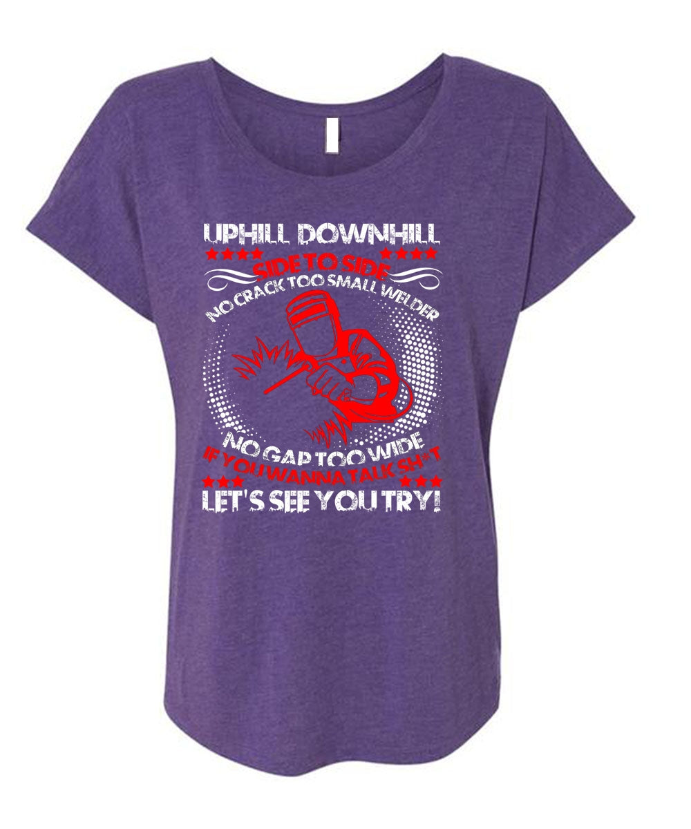 No Crack Too Small Welder T Shirt, Let's See You Try T Shirt, Cool Shirt (Ladies' Triblend Dolman Sleeve)