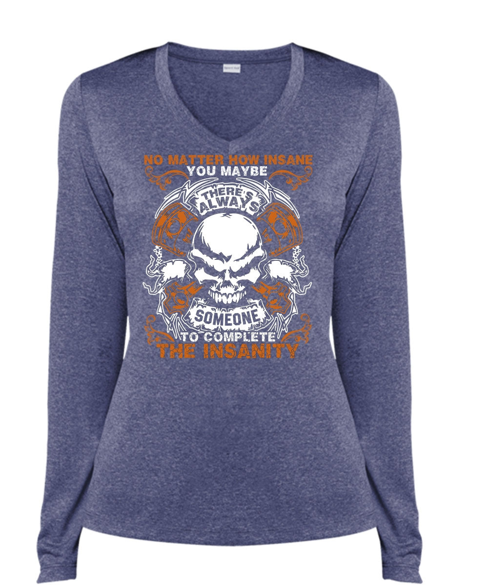 No Matter How Insane T Shirt, Being A Mechanic T Shirt, Cool Shirt (Ladies LS Heather V-Neck)