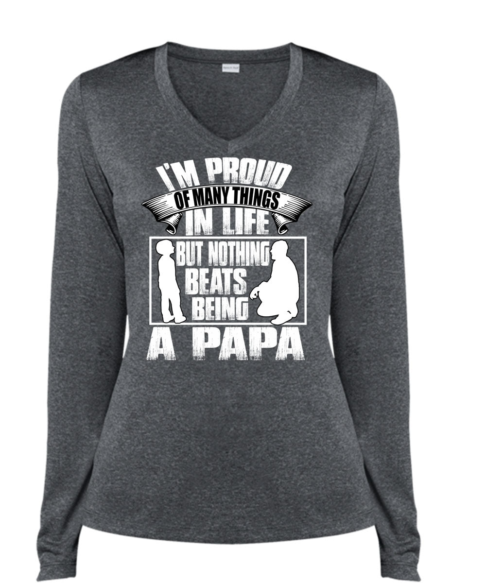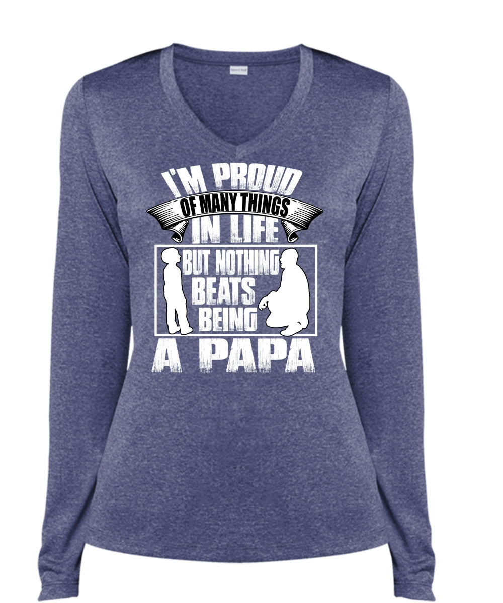 Nothing Beats Being A Papa T Shirt, Being A Papa T Shirt, Cool Shirt (Ladies LS Heather V-Neck)