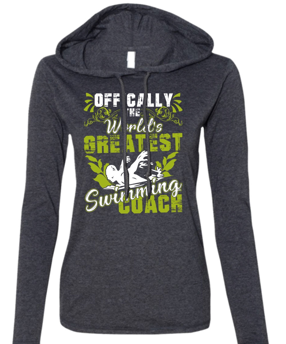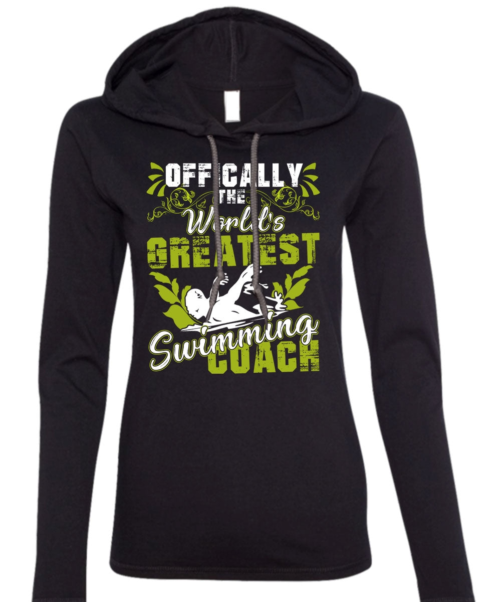 Offically The World's Greatest Swimming Coach T Shirt, Being A Swimmer T Shirt (Anvil Ladies Ringspun Hooded)
