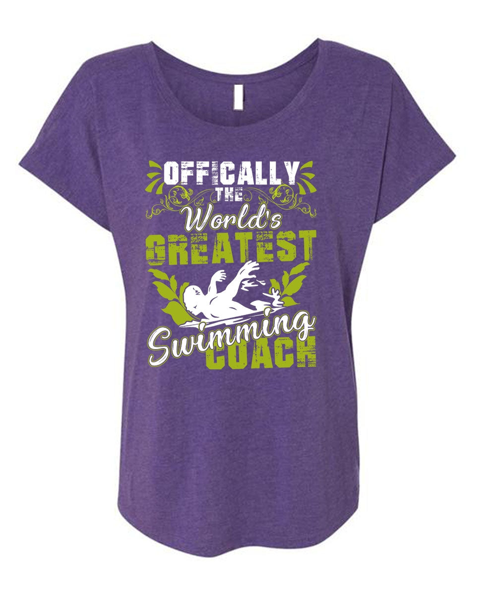 Offically The World's Greatest Swimming Coach T Shirt, Being A Swimmer T Shirt, Cool Shirt (Ladies' Triblend Dolman Sleeve)