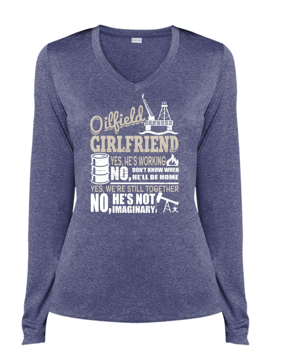 Oilfield Girlfriend T Shirt, I Love Oilfield T Shirt, Cool Shirt (Ladies LS Heather V-Neck)