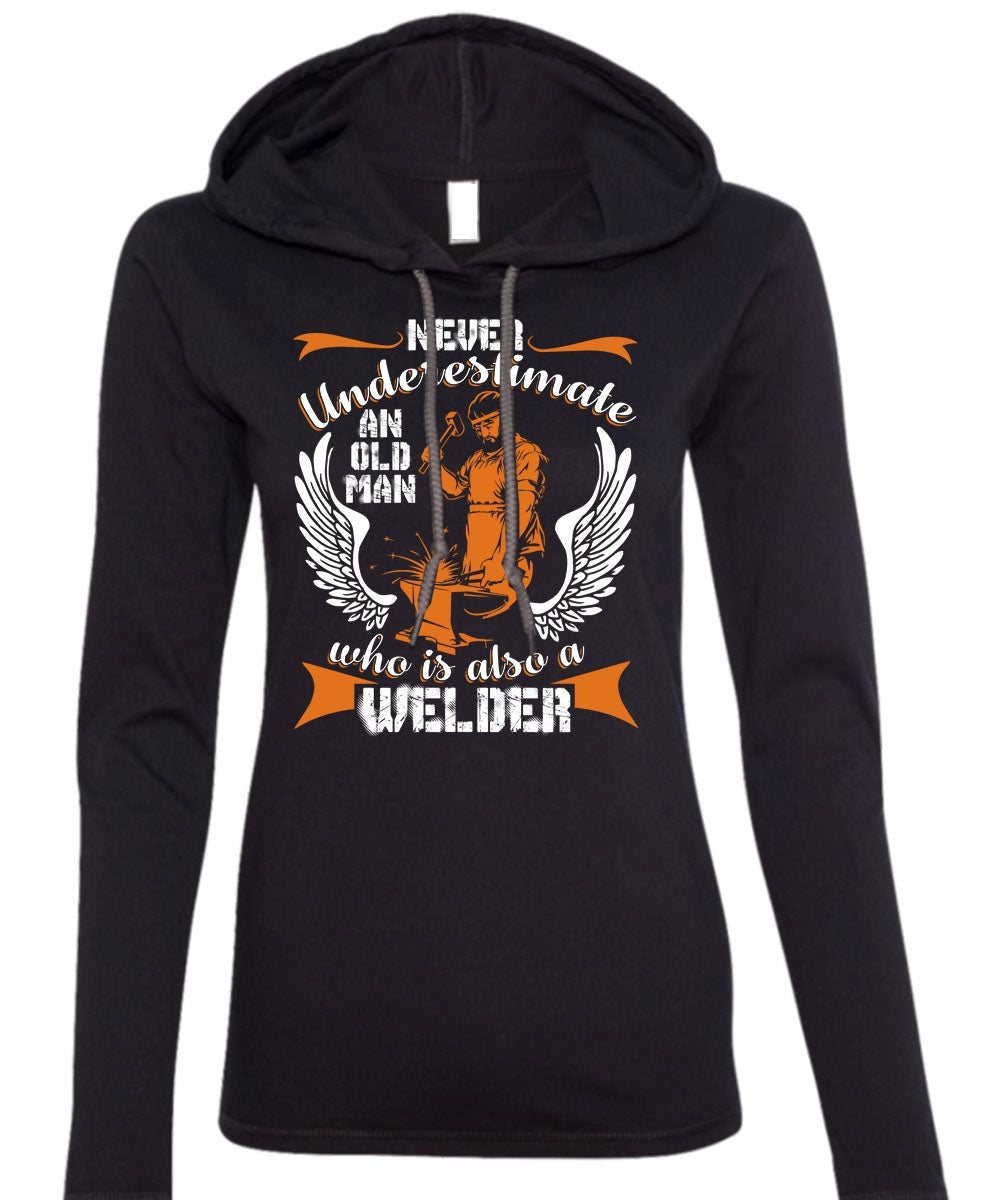 Old Man Who Is Also A Welder T Shirt, Being A Welder T Shirt (Anvil Ladies Ringspun Hooded)