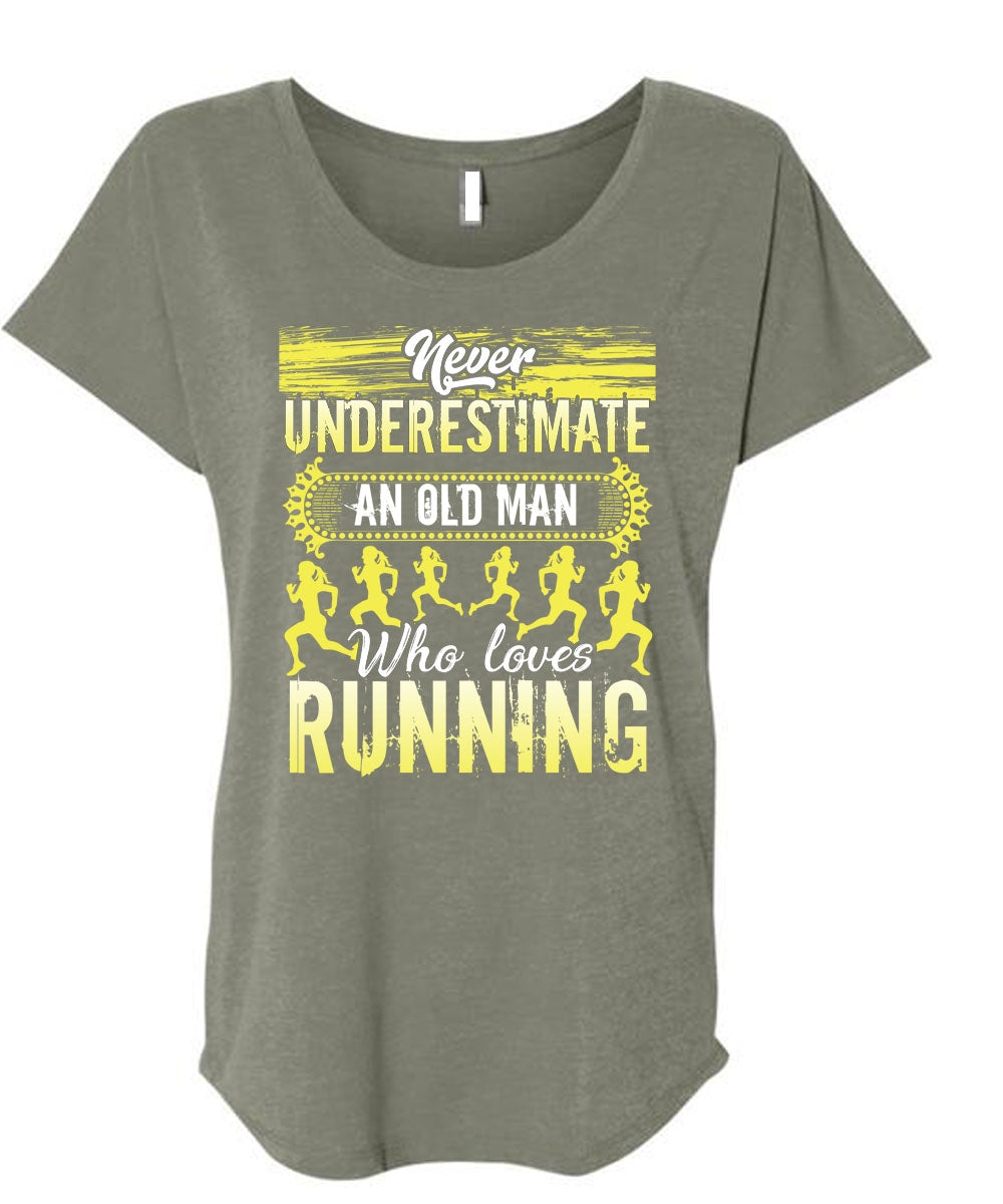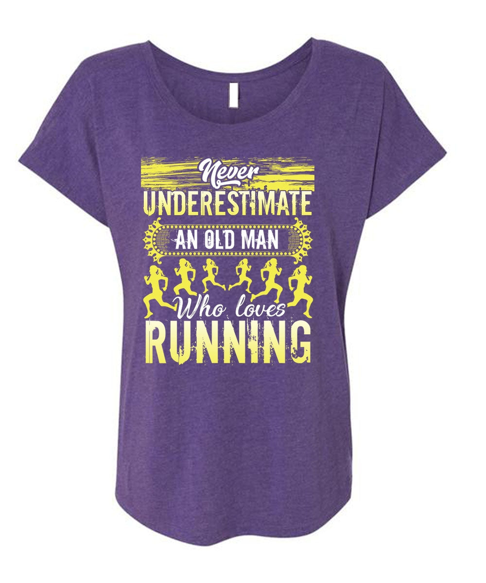 Old Man Who Loves Running T Shirt, Being A Runner T Shirt, Cool Shirt (Ladies' Triblend Dolman Sleeve)
