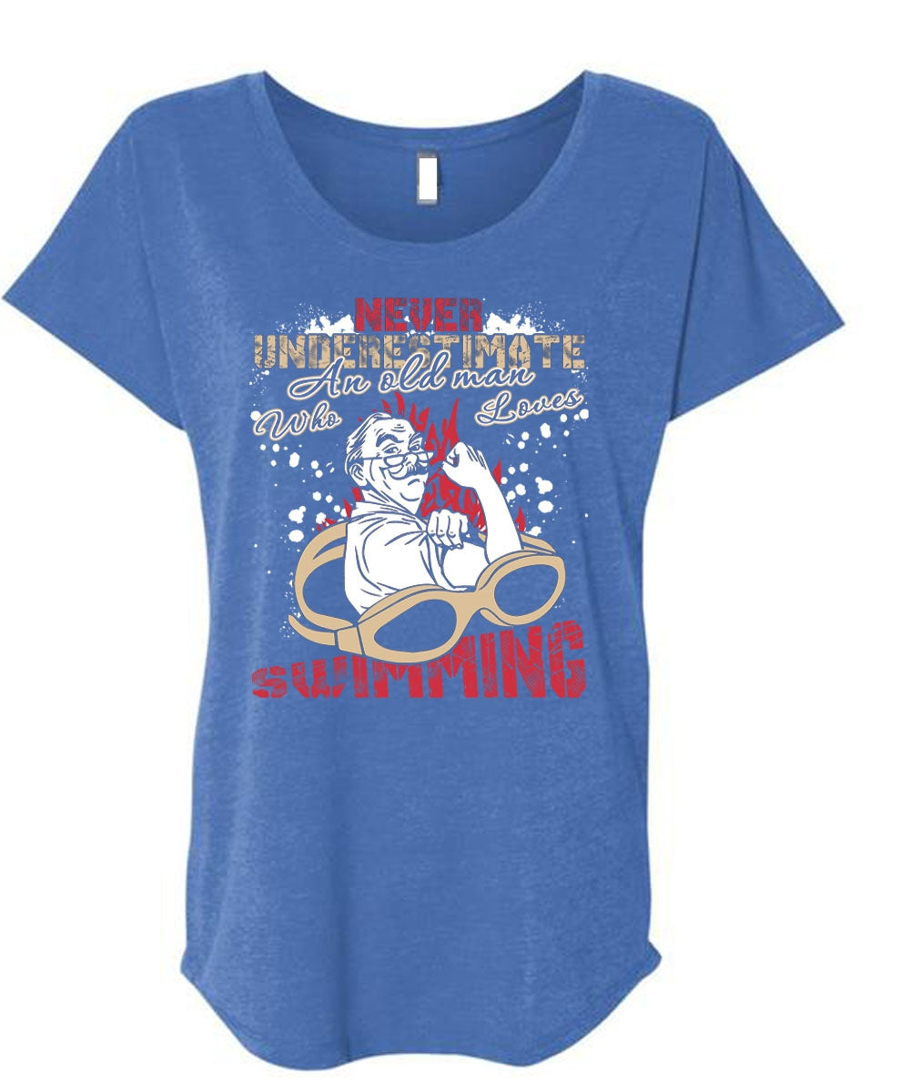 Old Man Who Loves Swimming T Shirt, Being A Swimmer T Shirt, Cool Shirt (Ladies' Triblend Dolman Sleeve)