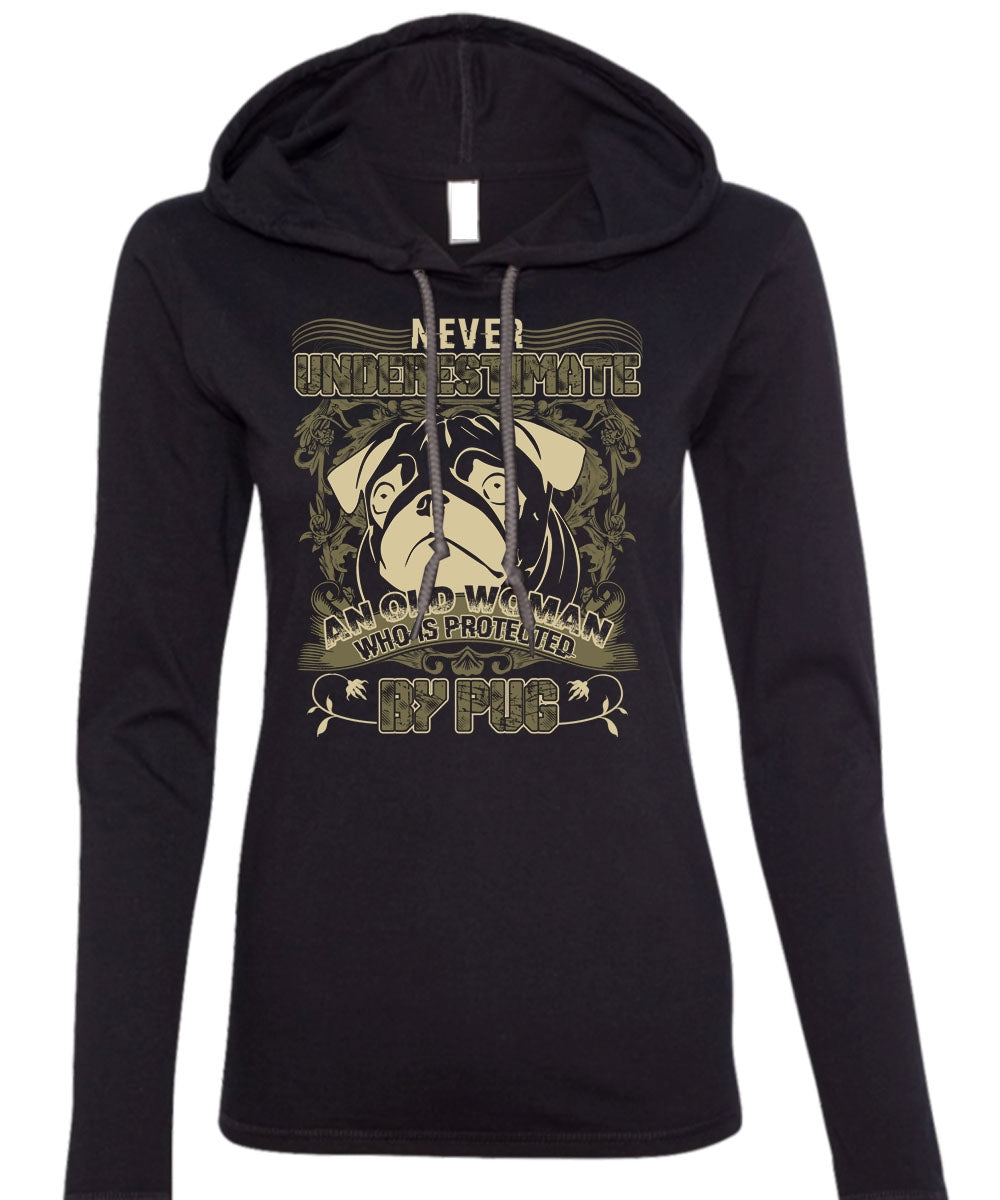 Old Woman Who Is Protected By Pug T Shirt, My Favorite T Shirt (Anvil Ladies Ringspun Hooded)