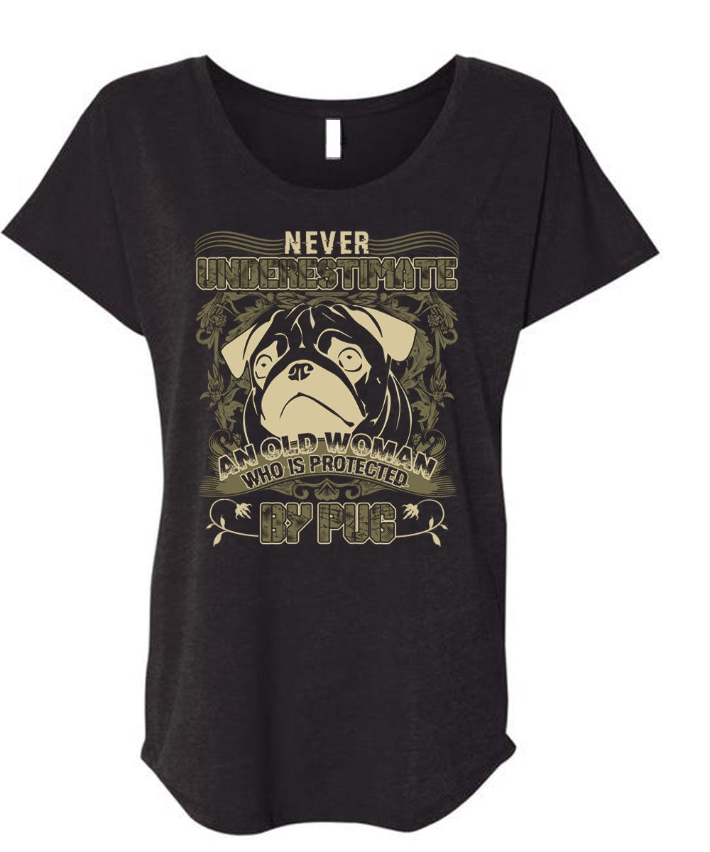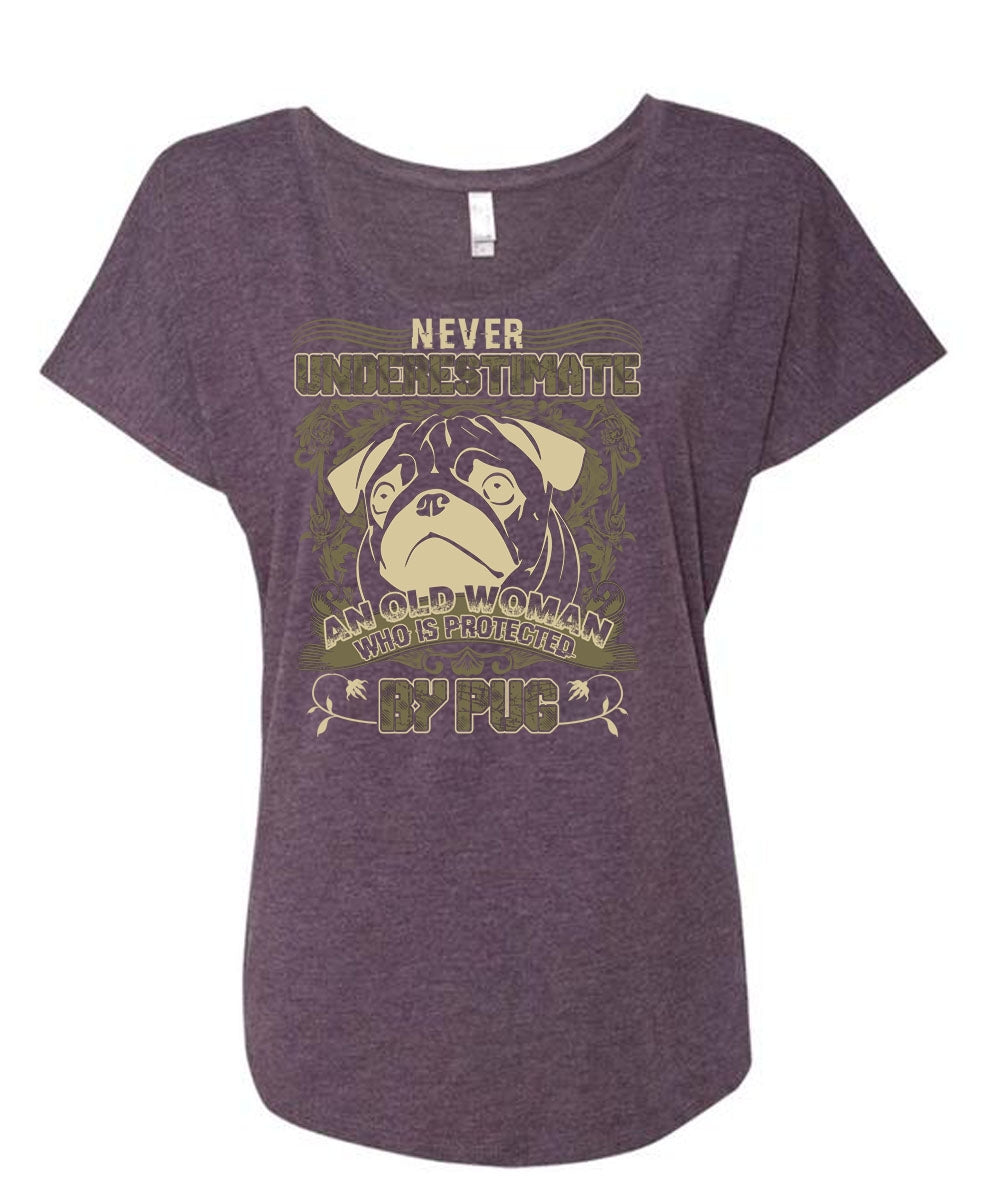 Old Woman Who Is Protected By Pug T Shirt, My Favorite T Shirt, Cool Shirt (Ladies' Triblend Dolman Sleeve)
