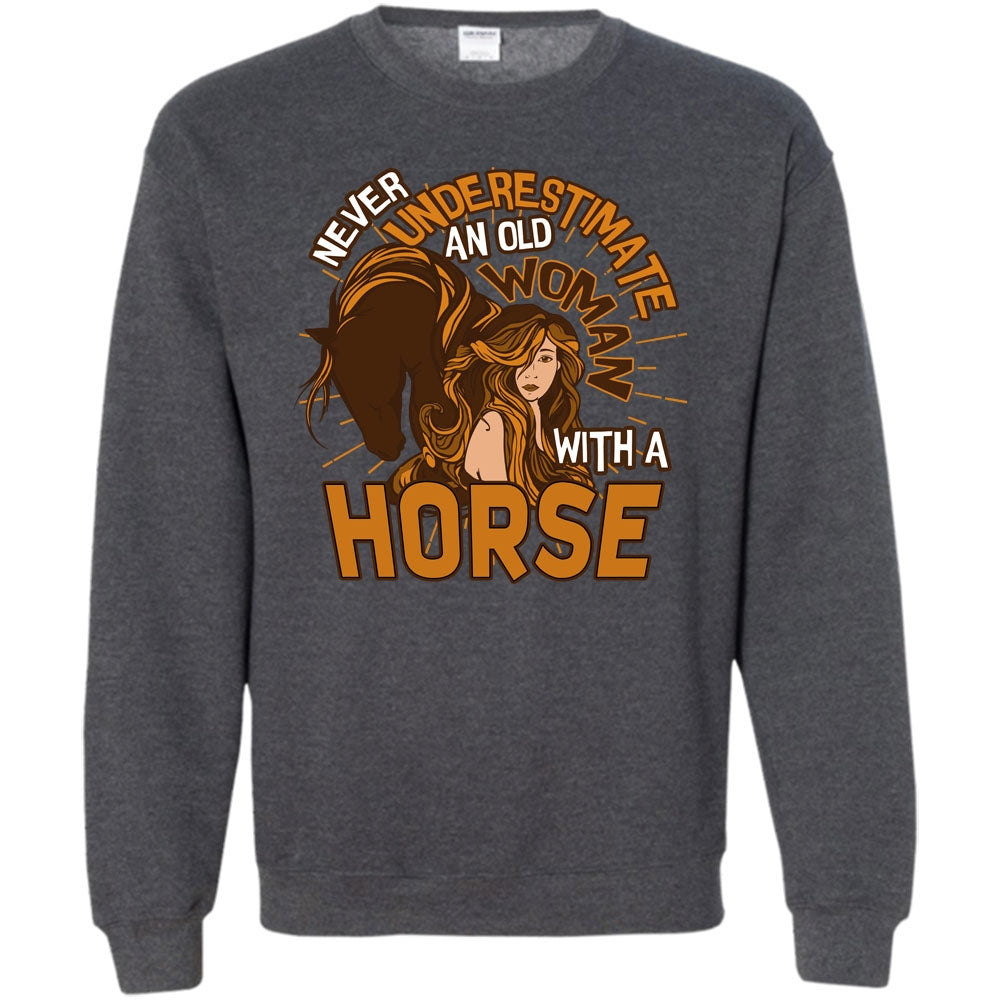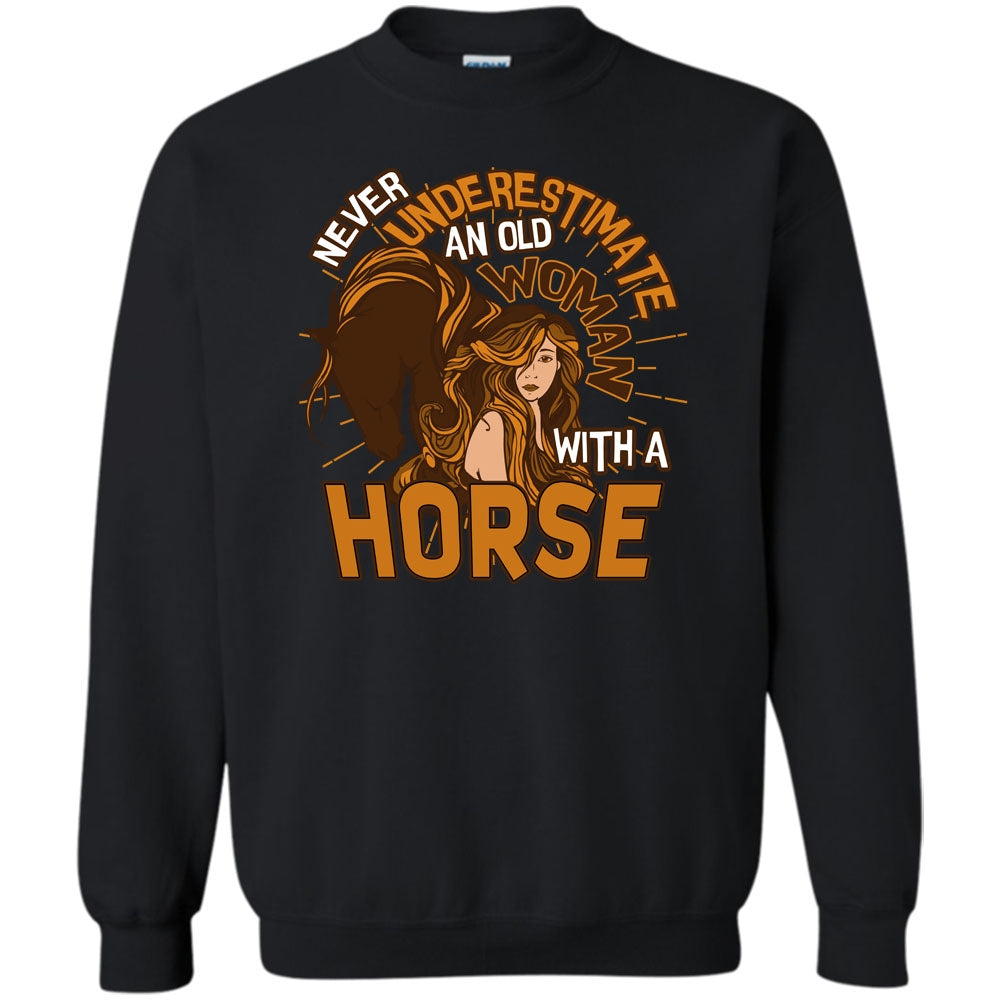 Old Woman With A Horse T Shirt, Coolest Equestrian Sweatshirt