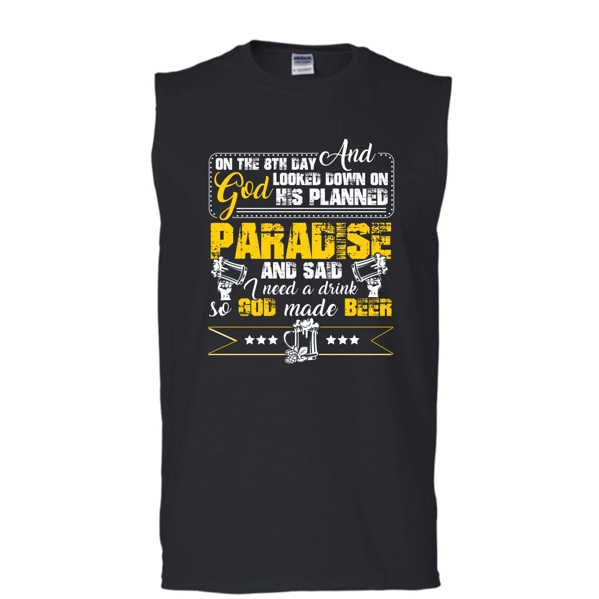 On The 8TH Day T Shirt, I need A Drink So God Made Beer T Shirt, Cool T Shirt (Men's Cotton Sleeveless)