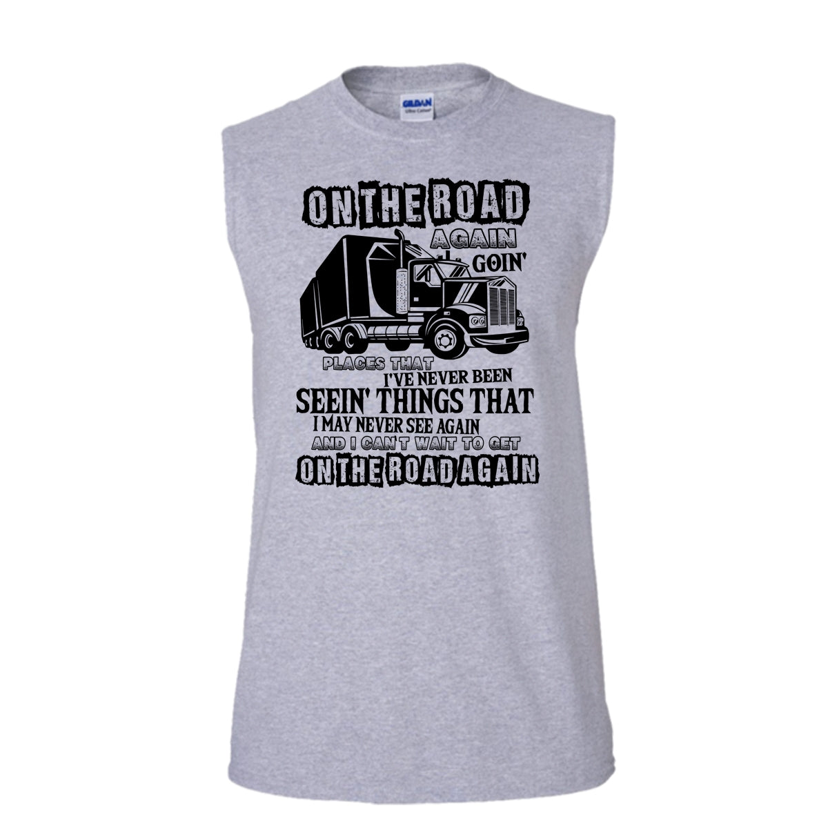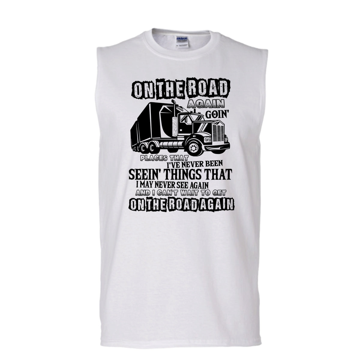 On The Road Again T Shirt, Coolest Trucker Ever T Shirt, Awesome t-shirts (Men's Cotton Sleeveless)