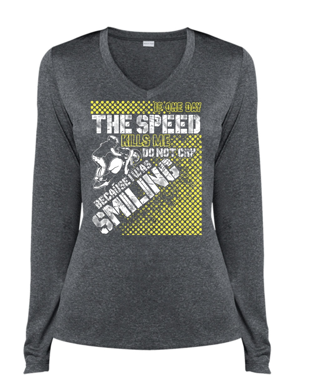 One Day The Speed Kills Me Do Not Cry T Shirt, Being A Biking T Shirt, Cool Shirt (Ladies LS Heather V-Neck)