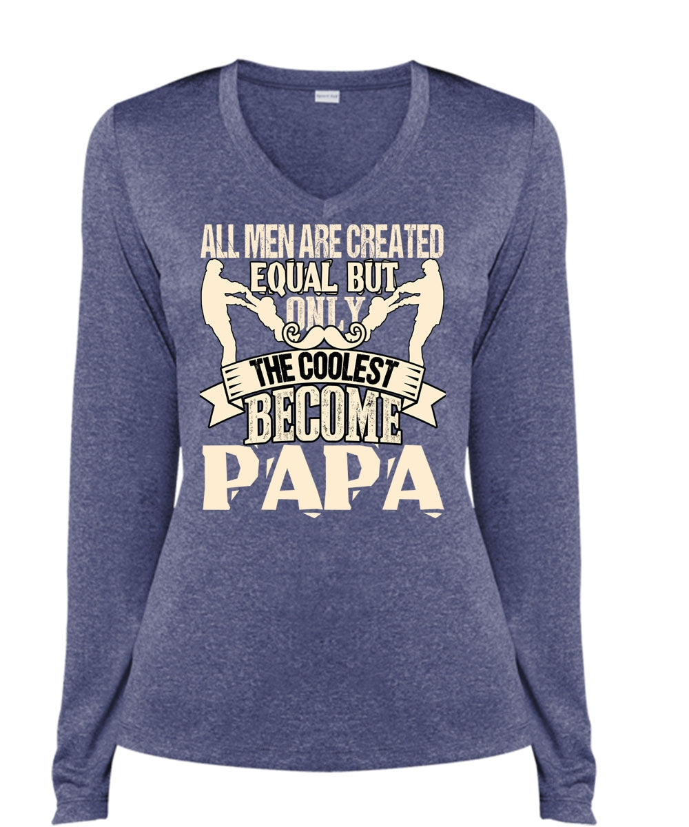 Only The Coolest Become Papa T Shirt, All Men Are Created Equal T Shirt, Cool Shirt (Ladies LS Heather V-Neck)