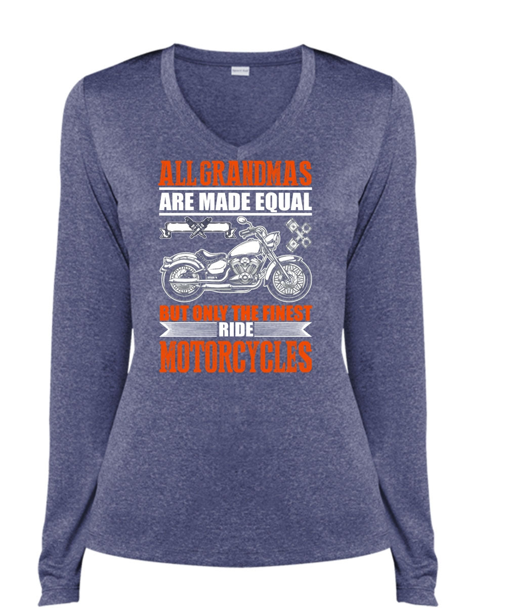 Only The Finest Ride Motorcycles T Shirt, All Grandmas Are Made Equal T Shirt, Cool Shirt (Ladies LS Heather V-Neck)
