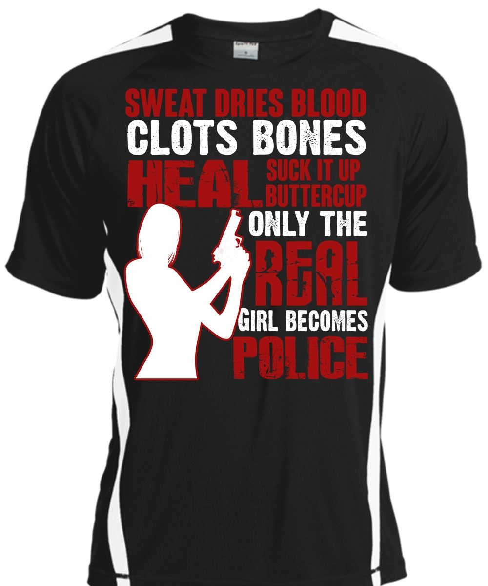 Only The Real Girl Becomes Police T Shirt, Sweat Dries Blood Clots T Shirt, Cool Shirt