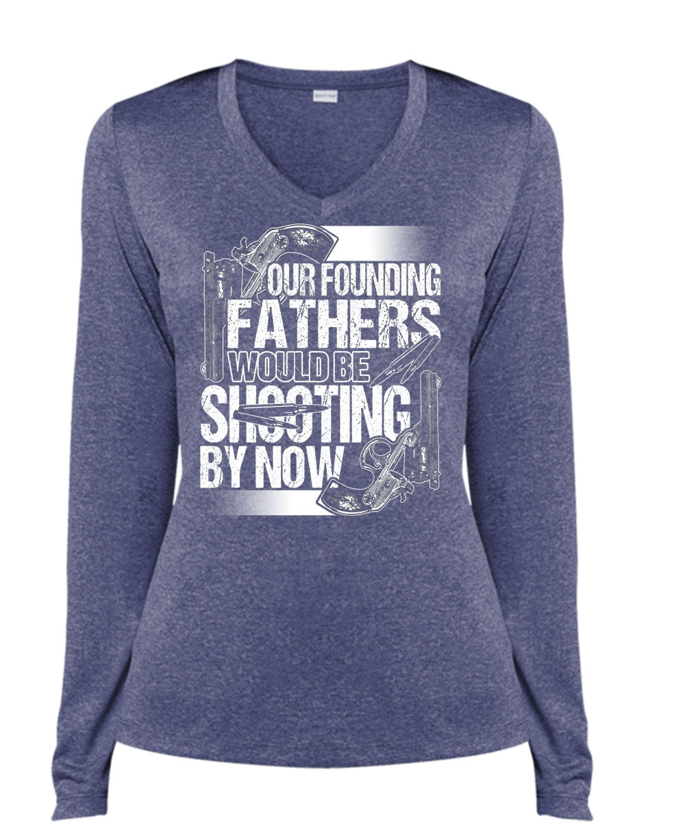 Our Founding Fathers Would Be Shooting T Shirt, Being A Hunter T Shirt, Cool Shirt (Ladies LS Heather V-Neck)