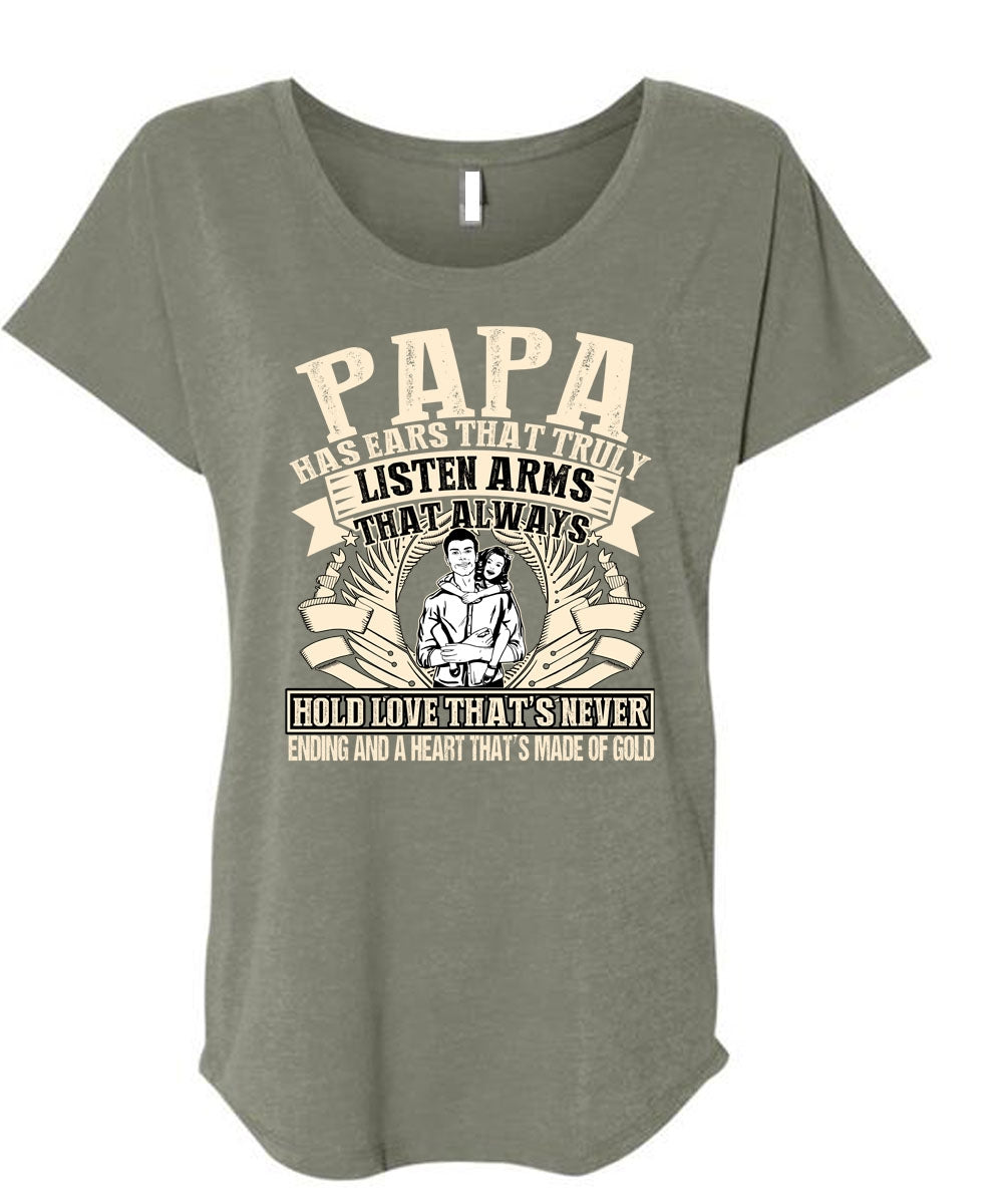 Papa Has Ears T Shirt, Made Of Gold T Shirt, Cool Shirt (Ladies' Triblend Dolman Sleeve)