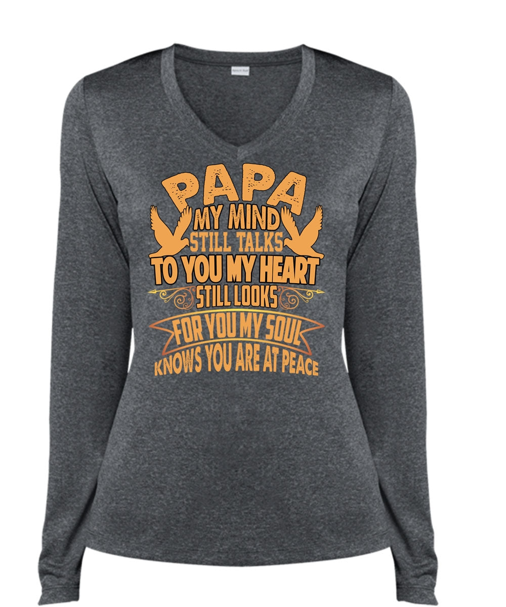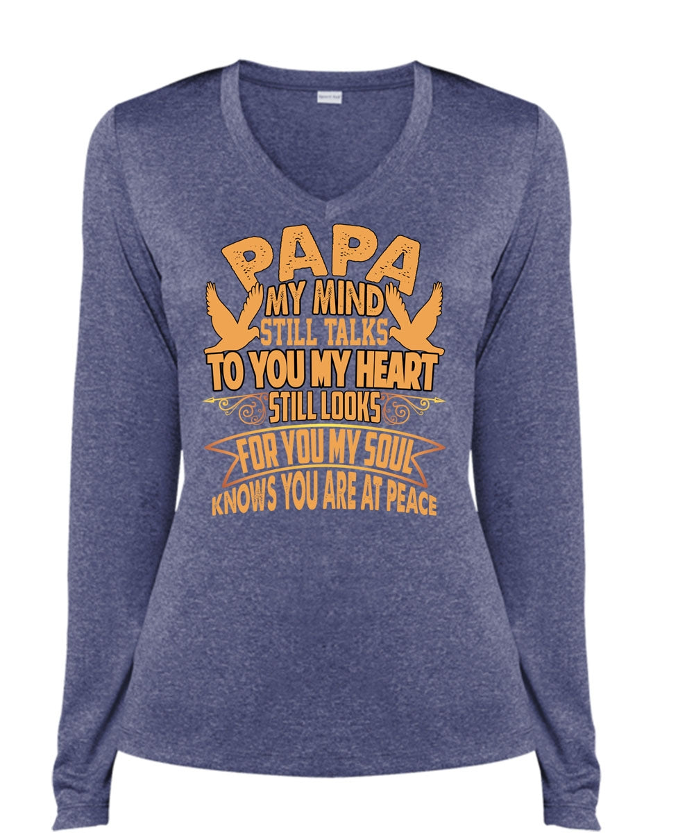 Papa My Mind Still Talks T Shirt, To You My Heart T Shirt, Cool Shirt (Ladies LS Heather V-Neck)