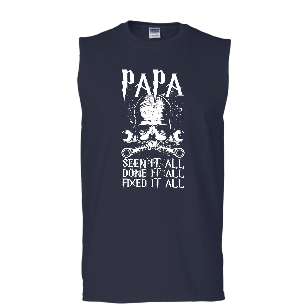 Papa Seen It All T Shirt, Done It All Fixed It All T Shirt, Cool T Shirt (Men's Cotton Sleeveless)