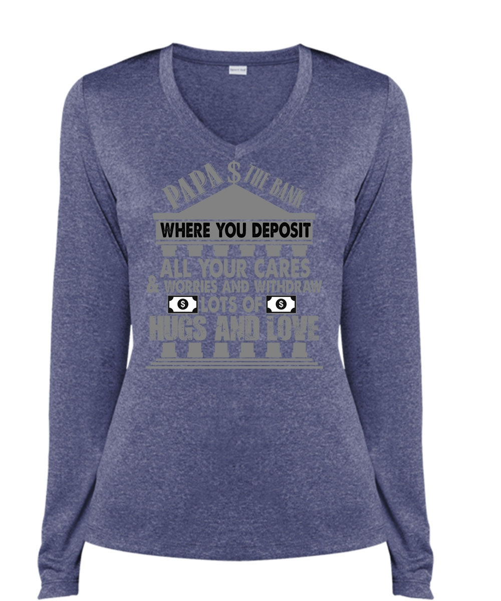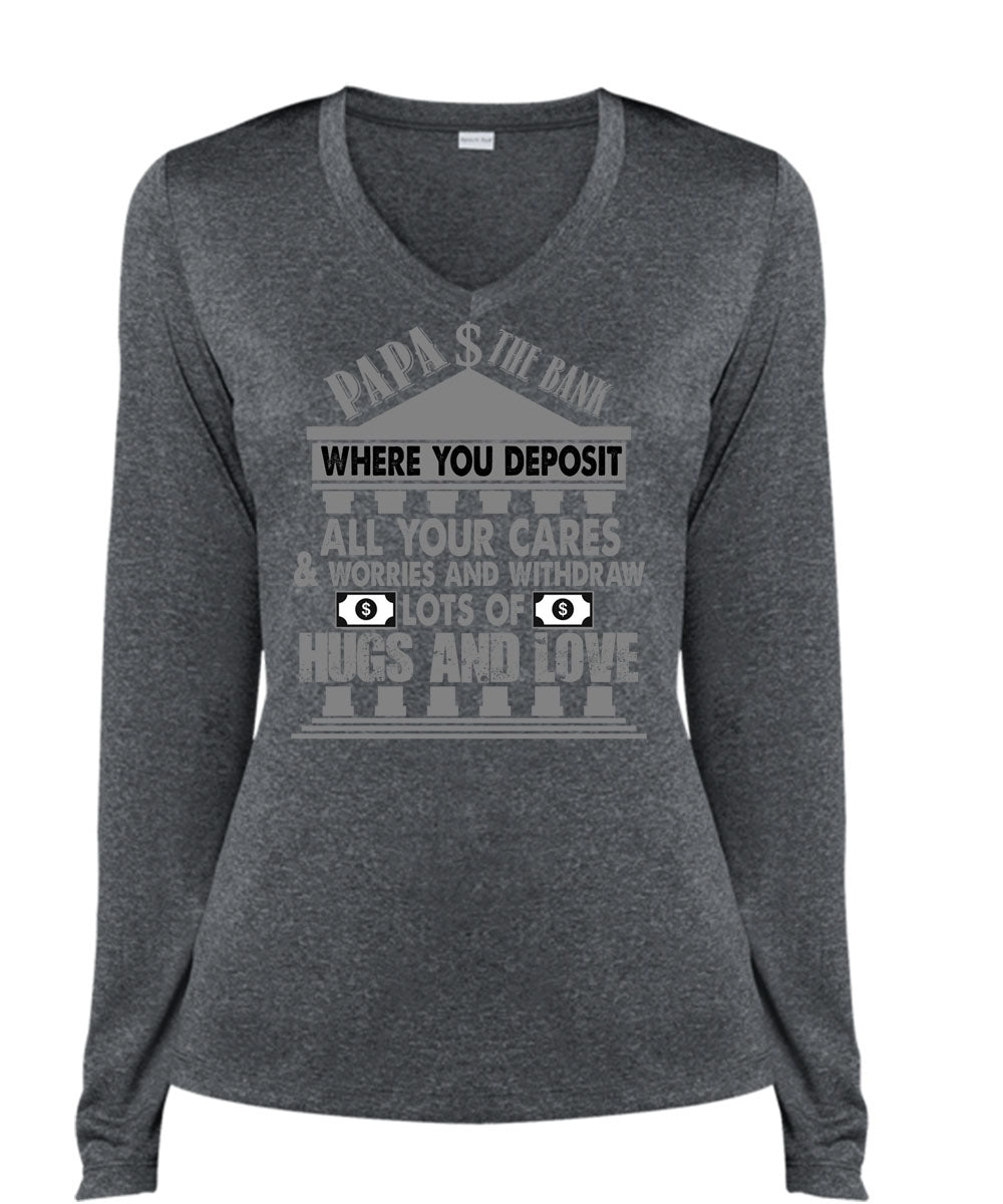 Papa The Bank T Shirt, Hugs And Love T Shirt, Cool Shirt (Ladies LS Heather V-Neck)