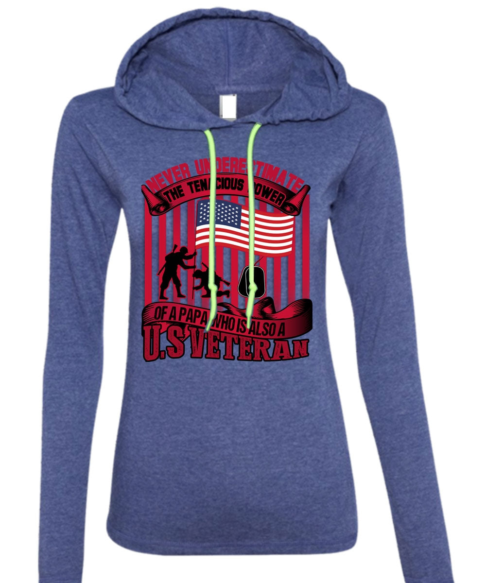 Papa Who Is Also A US Veteran T Shirt, Being A Veteran T Shirt (Anvil Ladies Ringspun Hooded)