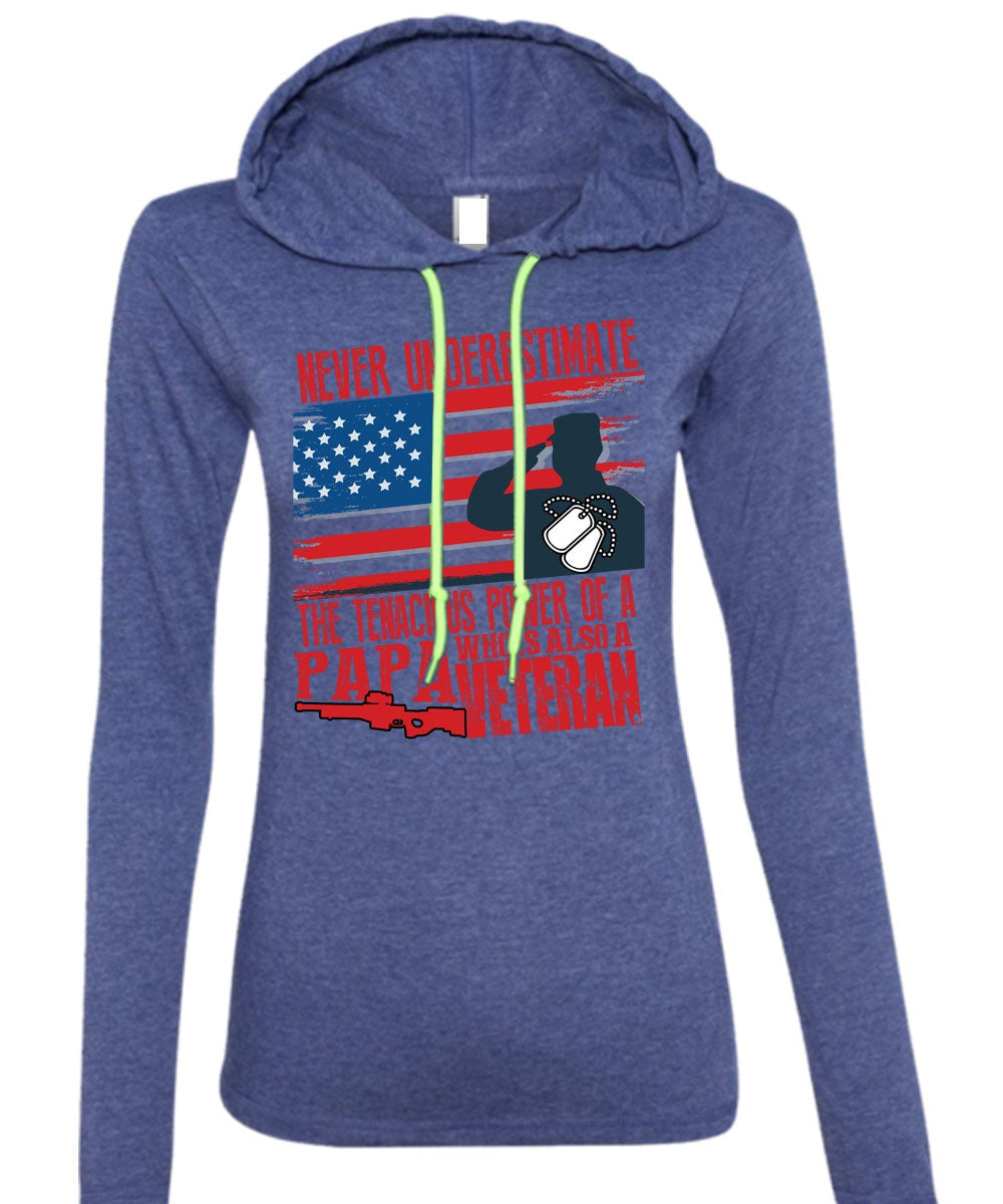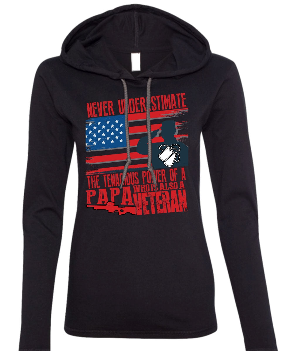 Papa Who Is Also A Veteran T Shirt, Being A Papa T Shirt (Anvil Ladies Ringspun Hooded)