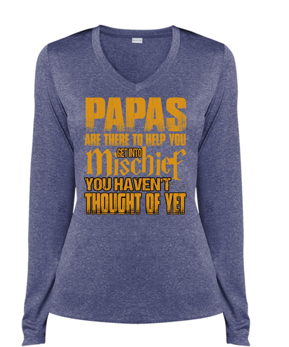 Papas Are There To Help You T Shirt, Being A Papa T Shirt, Cool Shirt (Ladies LS Heather V-Neck)