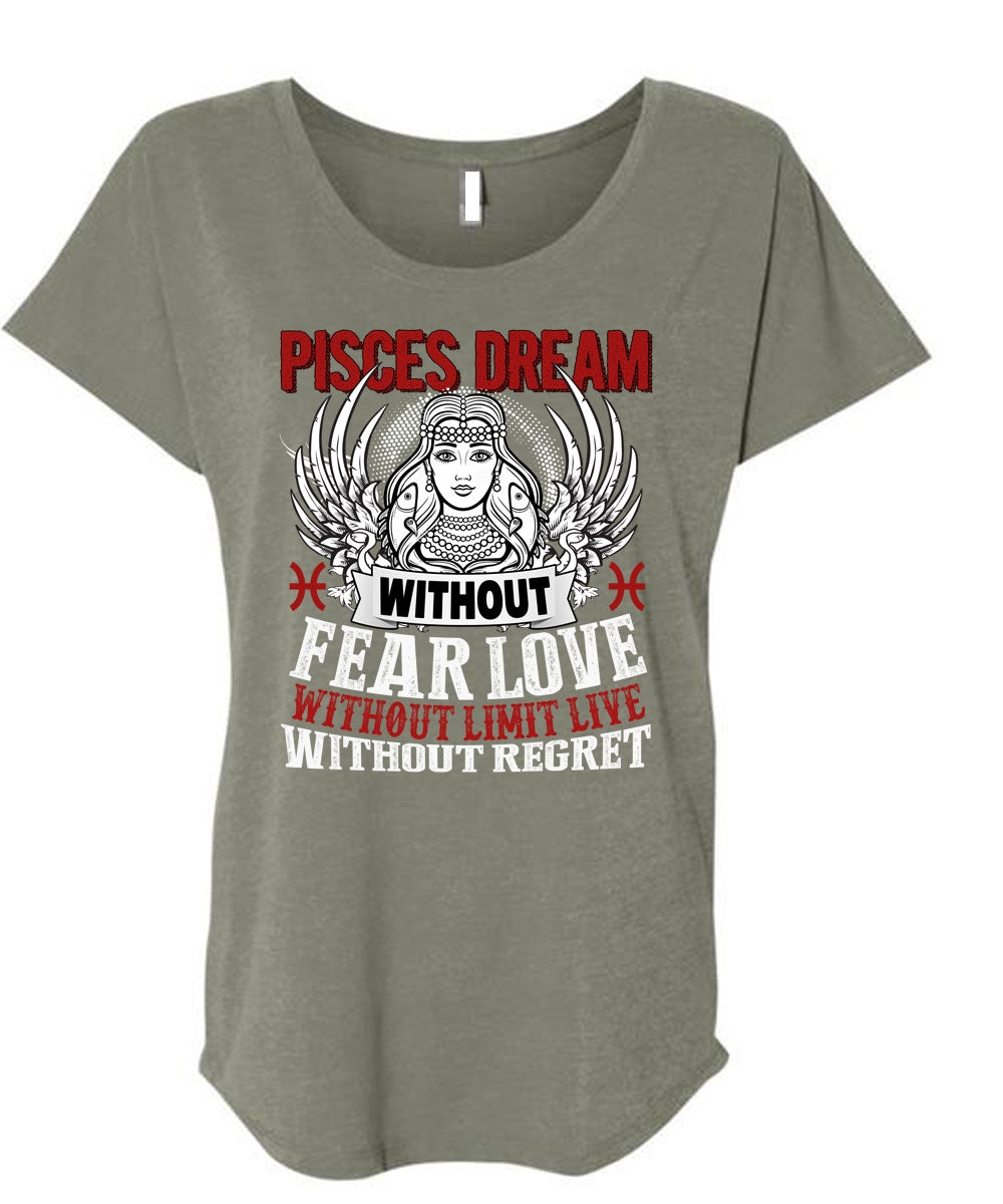 Pisces Dream Without Fear Love T Shirt, Being A Pisces T Shirt, Cool Shirt (Ladies' Triblend Dolman Sleeve)