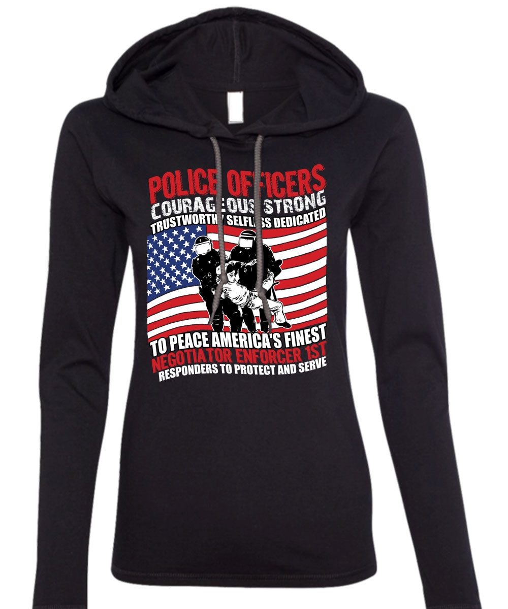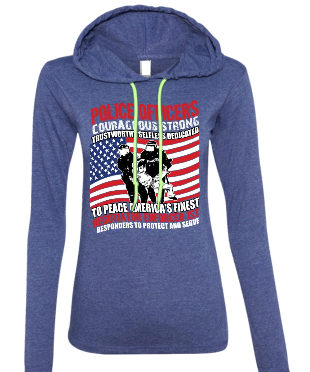 Police Officers Courageous Strong T Shirt, Being A Police T Shirt (Anvil Ladies Ringspun Hooded)