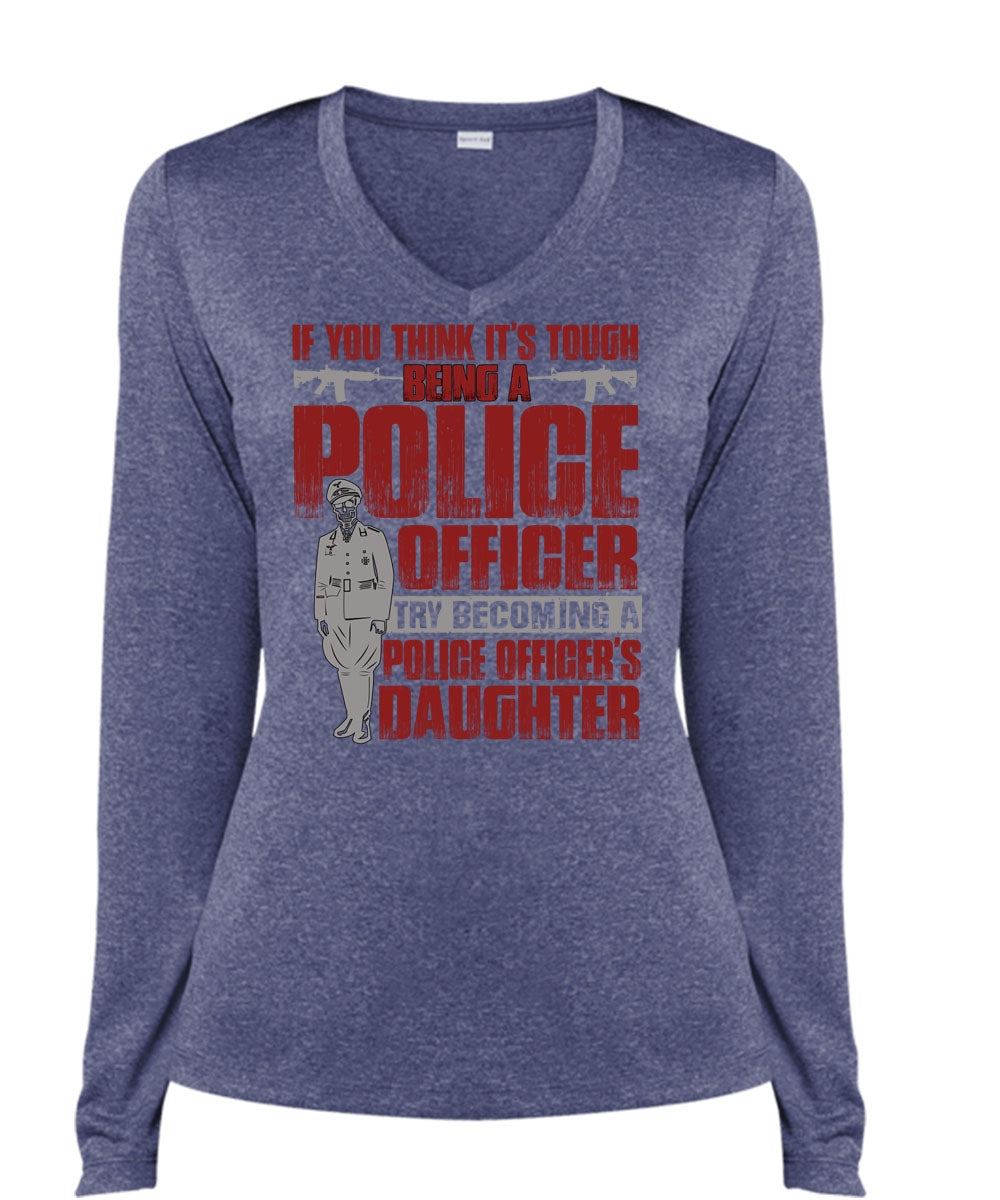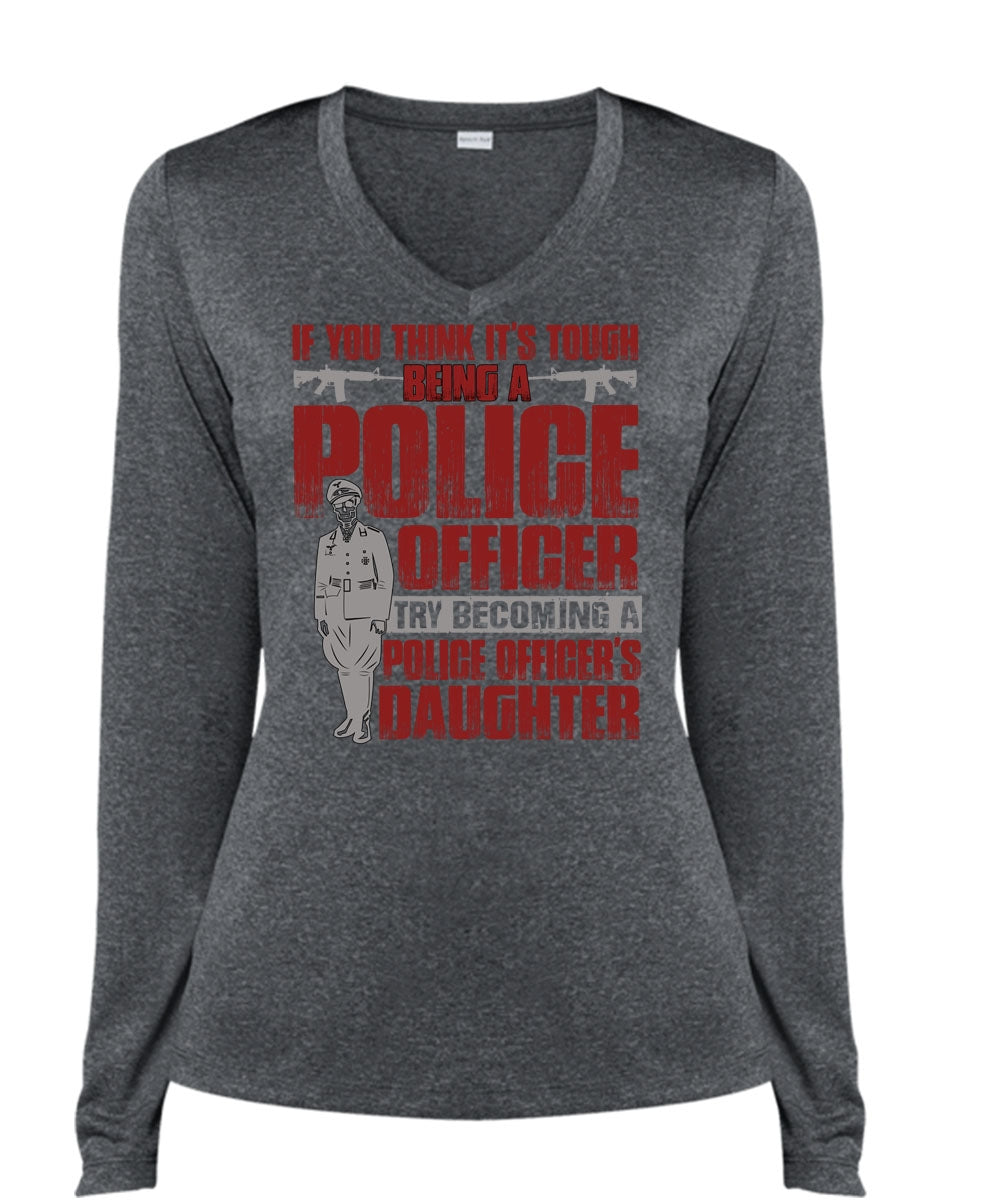 Police Officer's Daughter T Shirt, Being A Police T Shirt, Cool Shirt (Ladies LS Heather V-Neck)