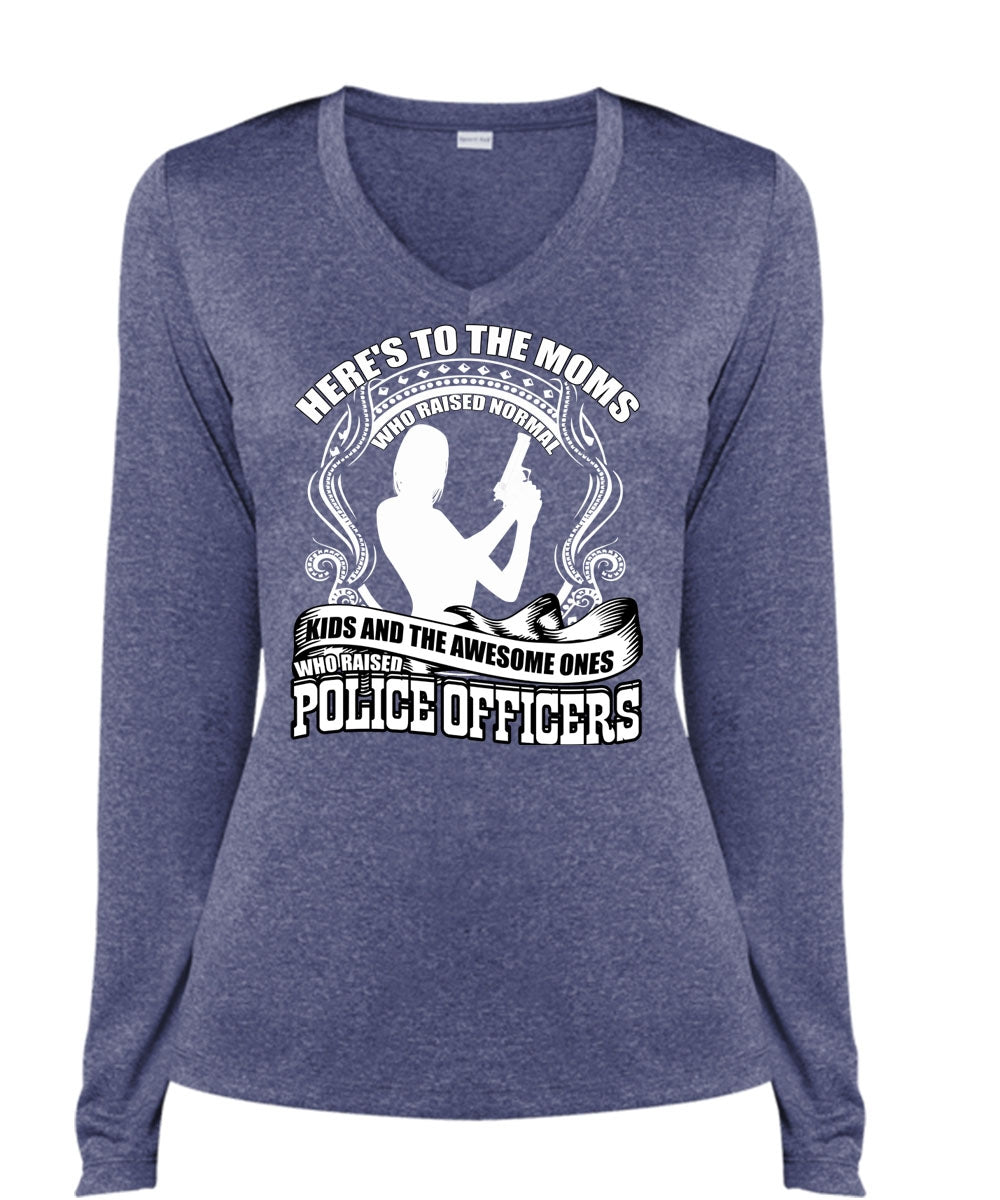 Police Officers T Shirt, Here's To The Moms T Shirt, Cool Shirt (Ladies LS Heather V-Neck)