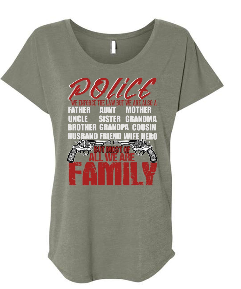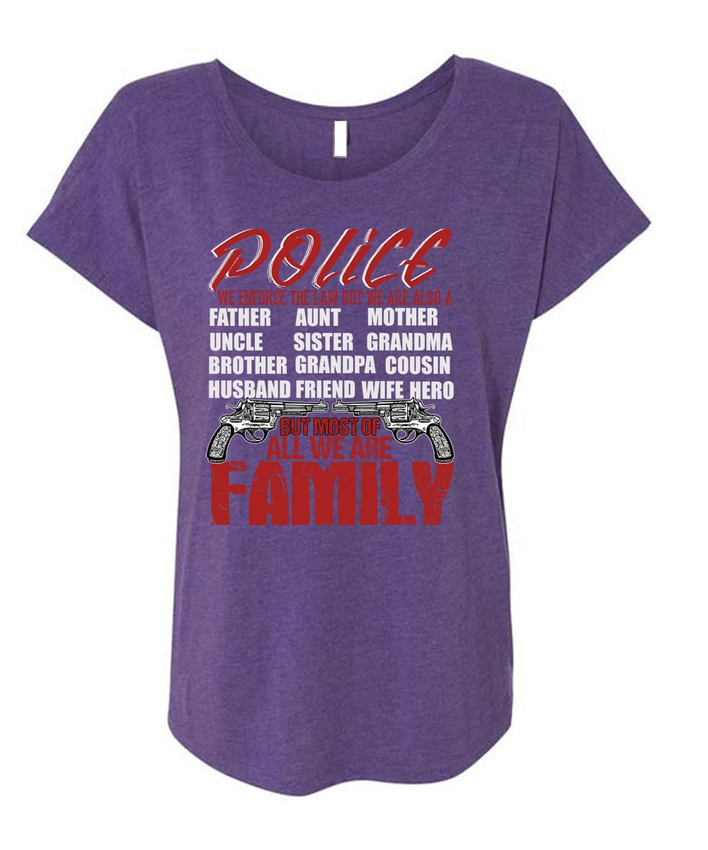 Police We Enforce The Law T Shirt, We Are Family T Shirt, Cool Shirt (Ladies' Triblend Dolman Sleeve)