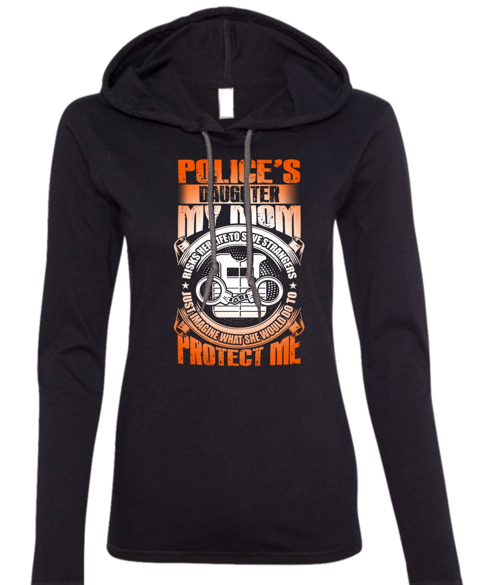 Police's Daughter T Shirt, My Mom Risks Her Life T Shirt (Anvil Ladies Ringspun Hooded)