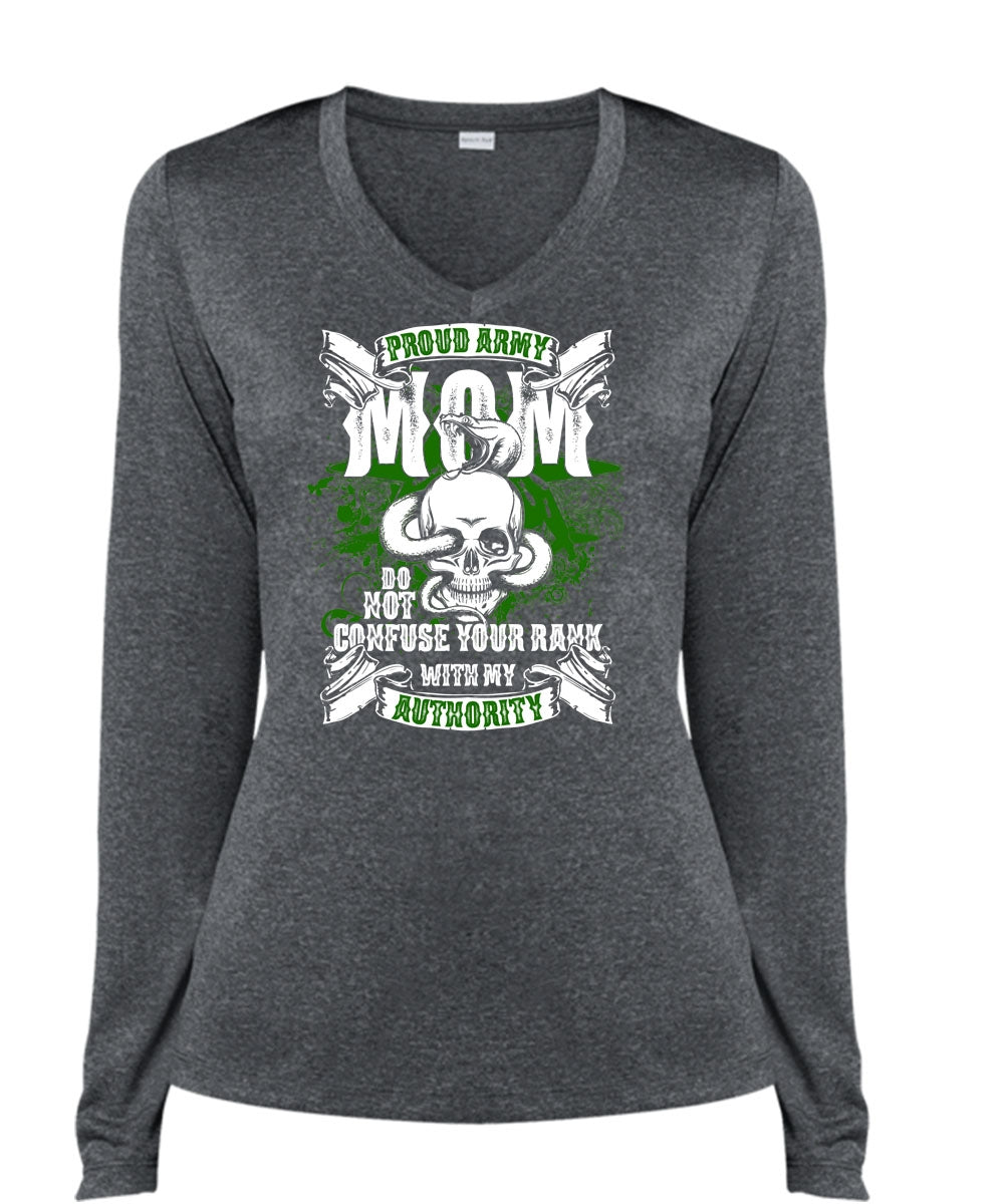Proud Army Mom T Shirt, Being A Mom T Shirt, Cool Shirt (Ladies LS Heather V-Neck)