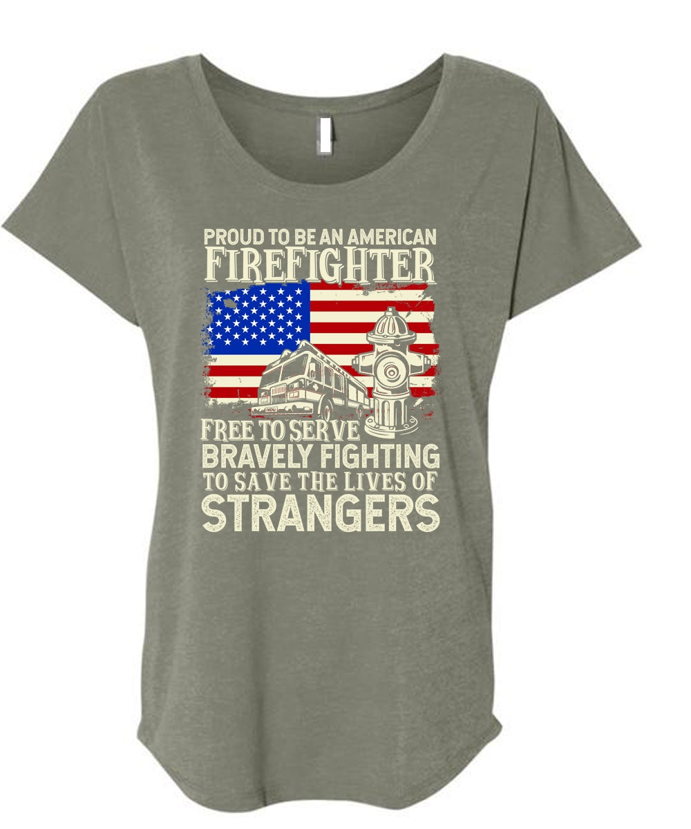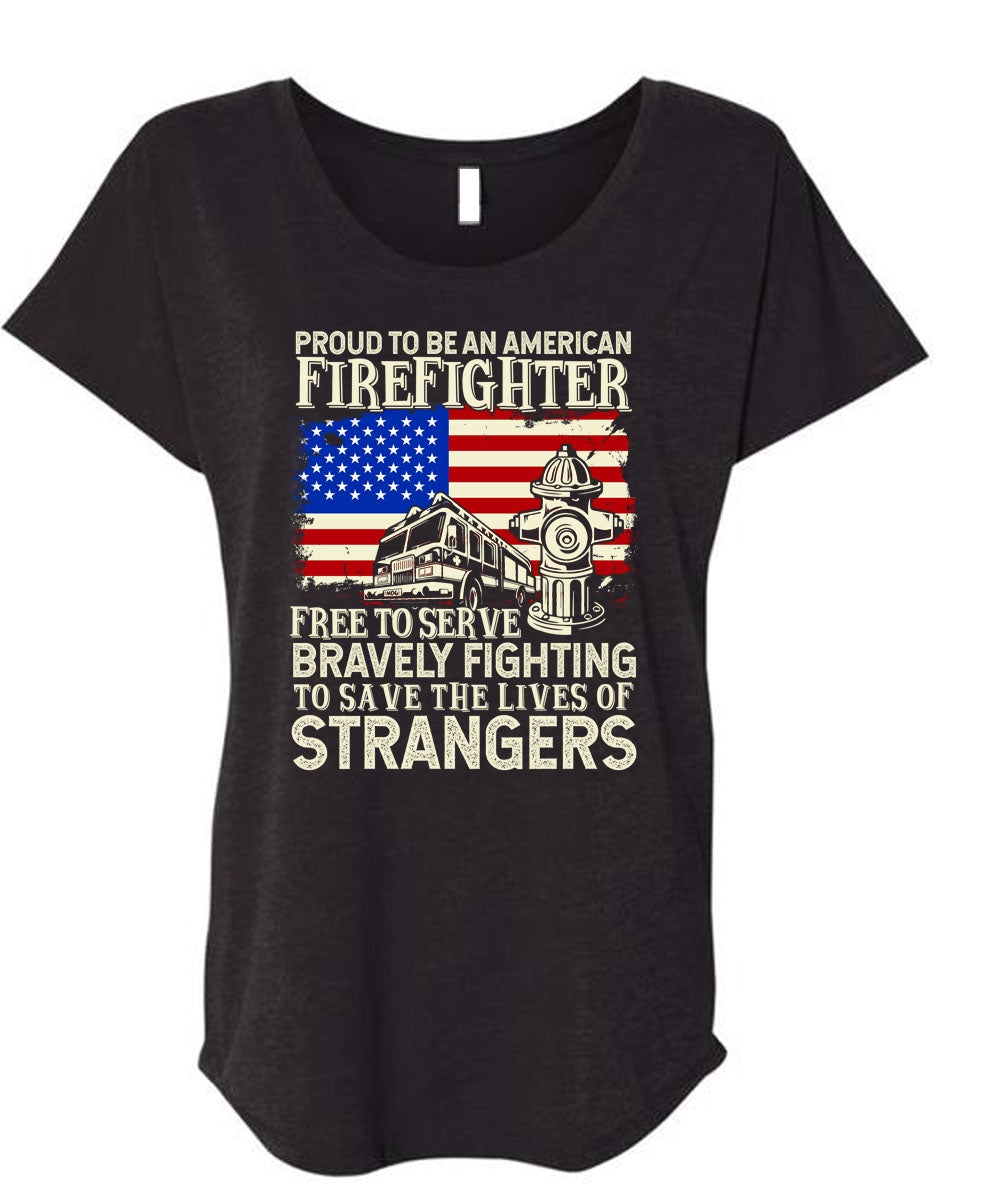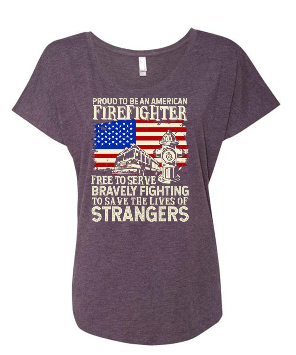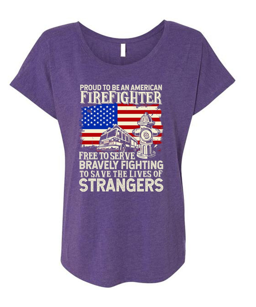 Proud To Be An American Firefighter T Shirt, Bravely Fighting T Shirt, Cool Shirt (Ladies' Triblend Dolman Sleeve)