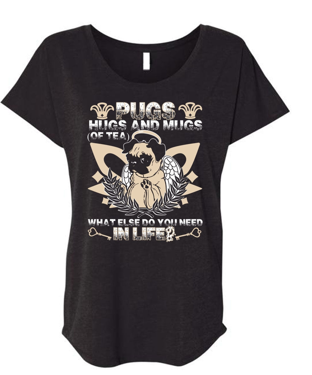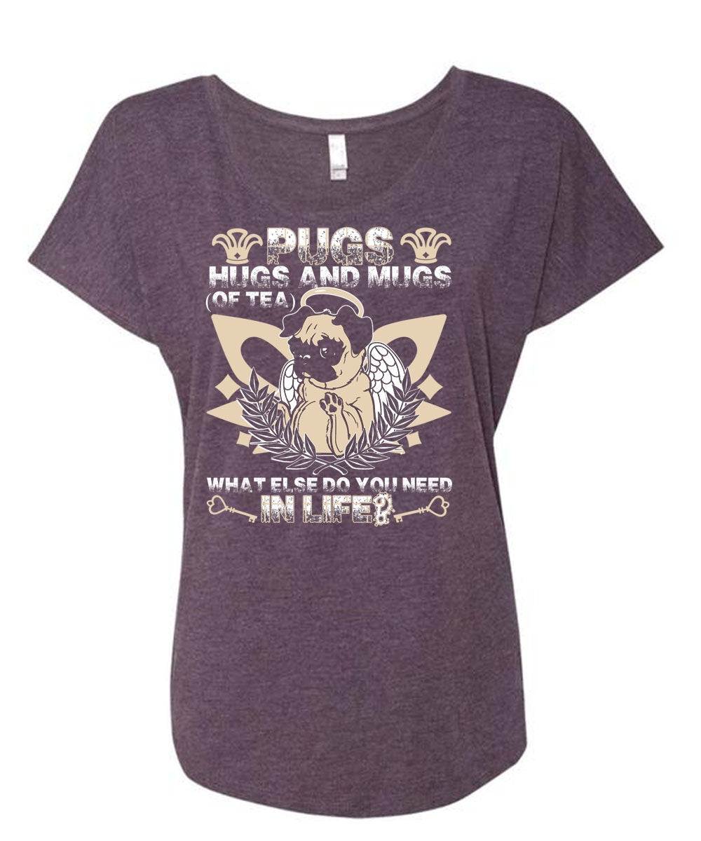 Pugs Hugs And Mugs T Shirt, You Need In Life T Shirt, Cool Shirt (Ladies' Triblend Dolman Sleeve)