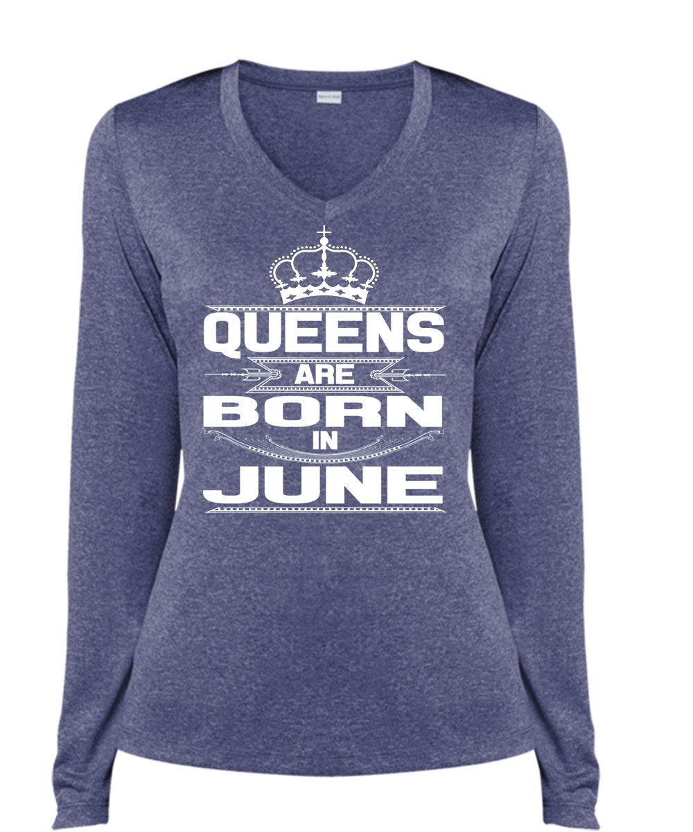 Queens Are Born In June T Shirt, I Love Lady T Shirt, Cool Shirt (Ladies LS Heather V-Neck)