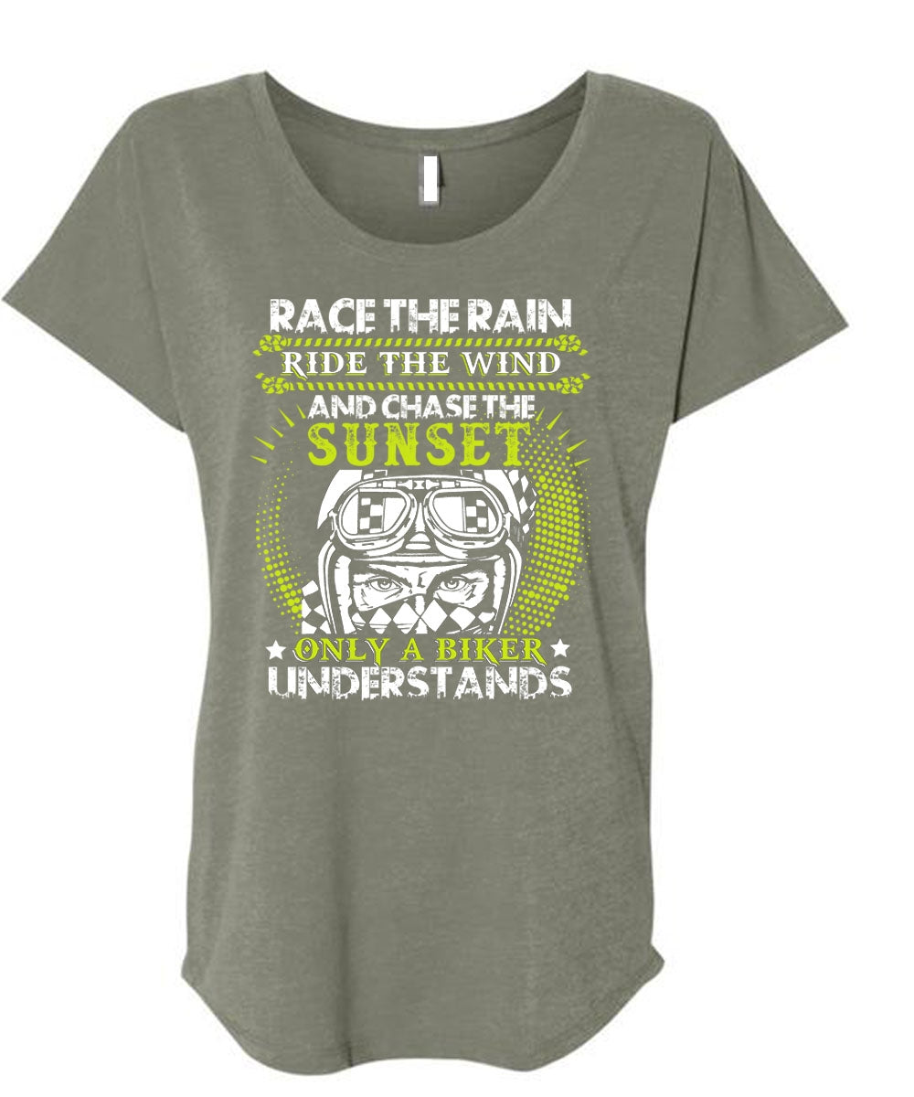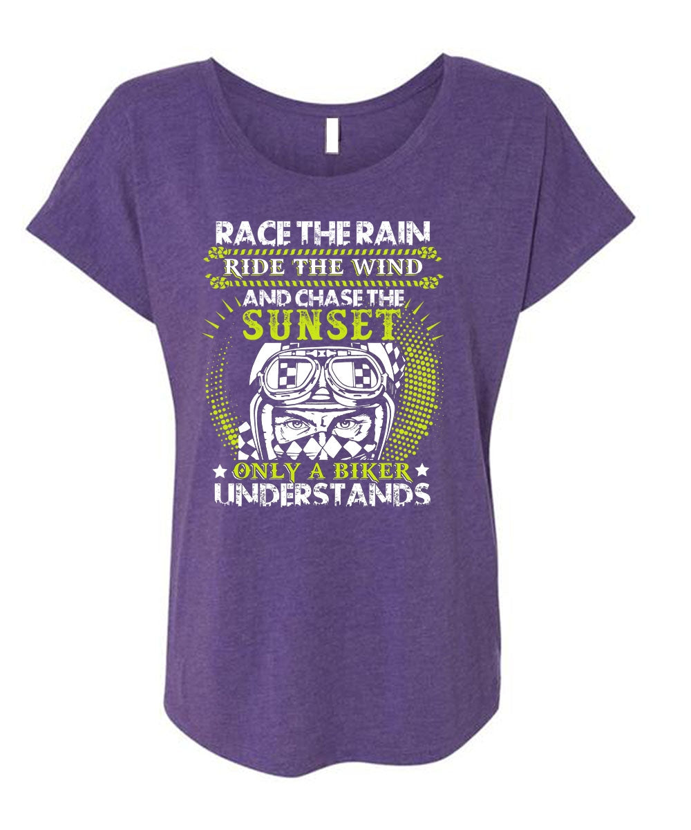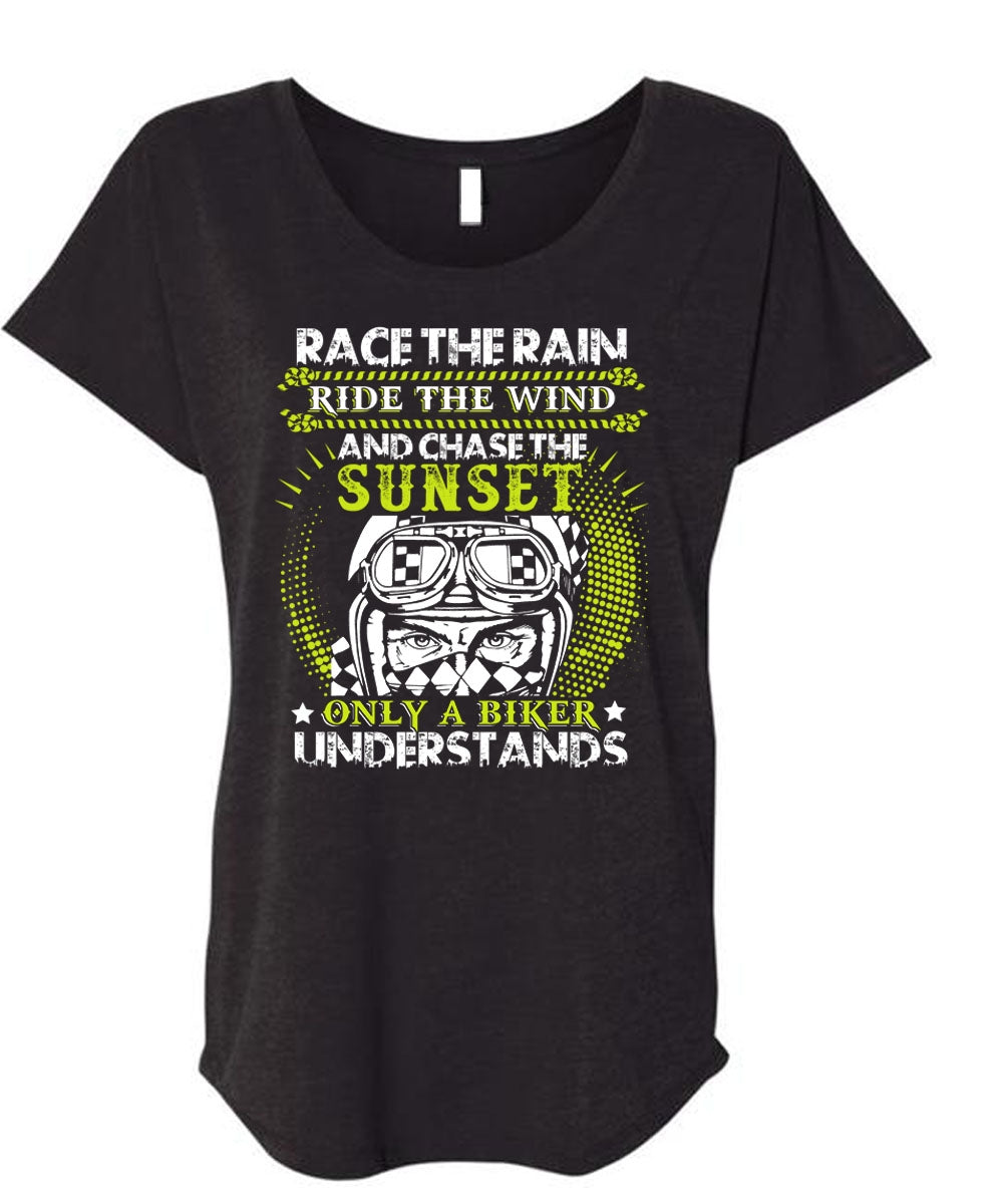 Race The Rain T Shirt, Only A Biker Understands T Shirt, Cool Shirt (Ladies' Triblend Dolman Sleeve)