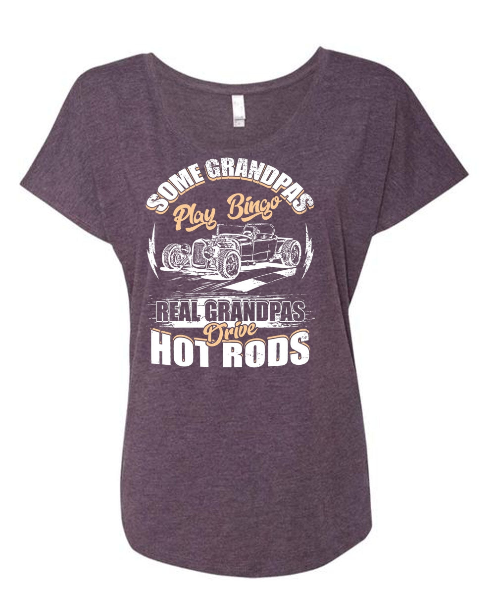 Real Grandpas Drive Hot Rod T Shirt, Grandpas Play Bingo T Shirt, Cool Shirt (Ladies' Triblend Dolman Sleeve)