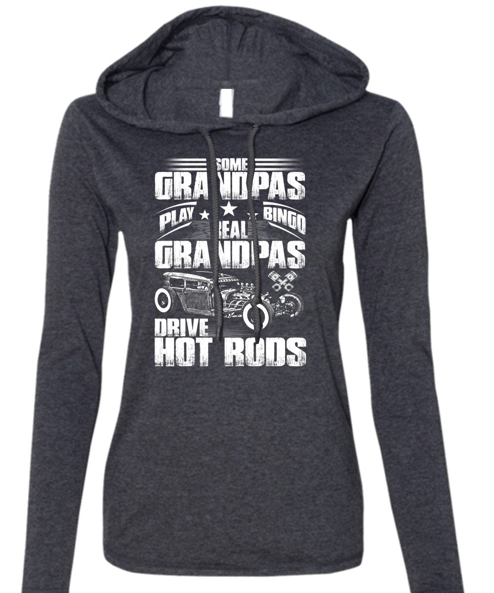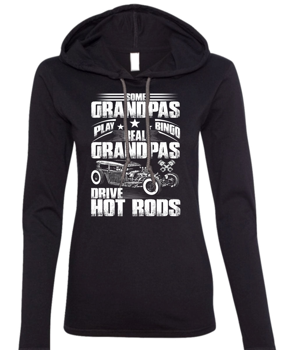 Real Grandpas Drive Hot Rods T Shirt, Some Grandpas Play Bingo T Shirt (Anvil Ladies Ringspun Hooded)
