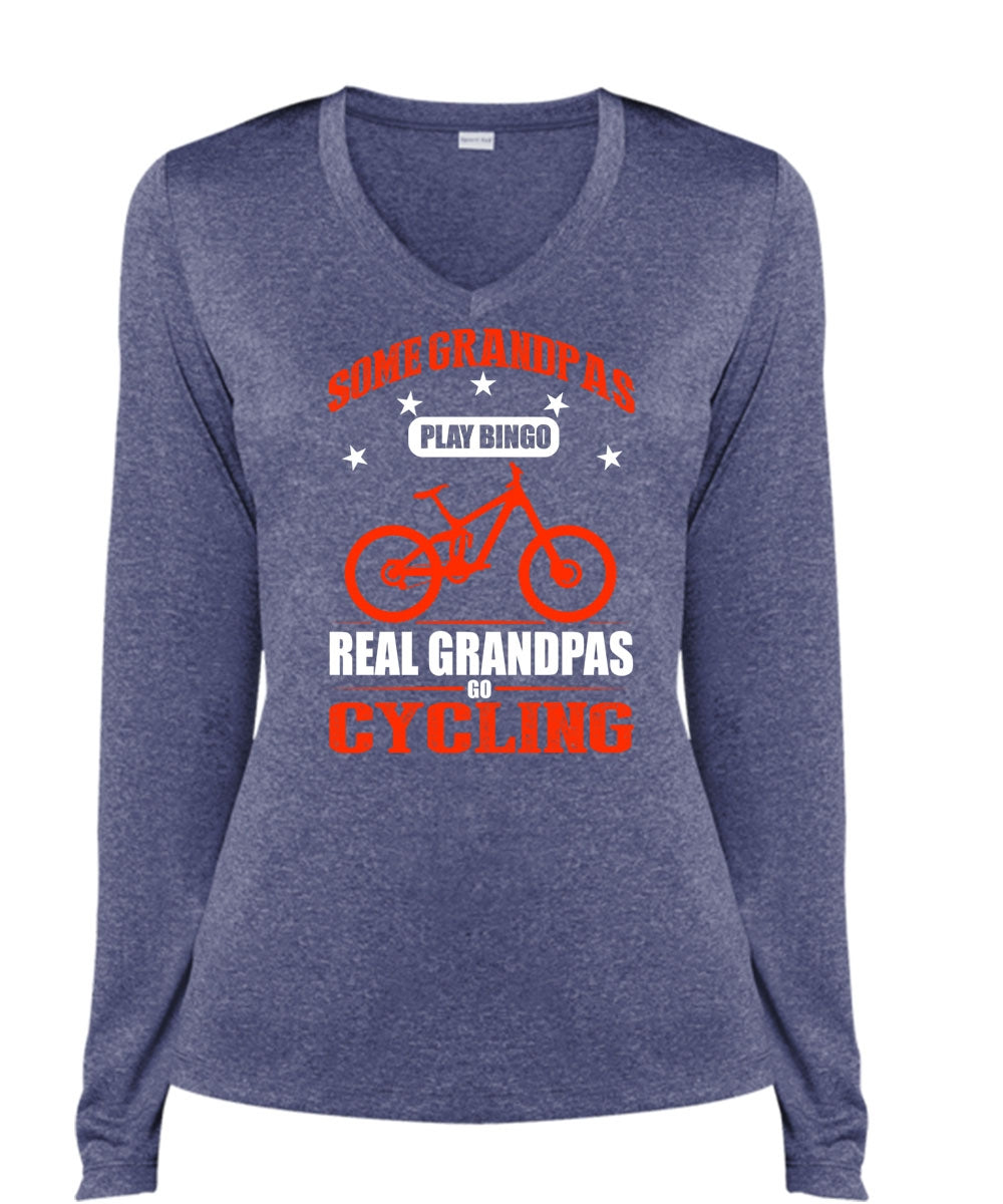 Real Grandpas Go Cycling T Shirt, Some Grandpas Play Bingo T Shirt, Cool Shirt (Ladies LS Heather V-Neck)