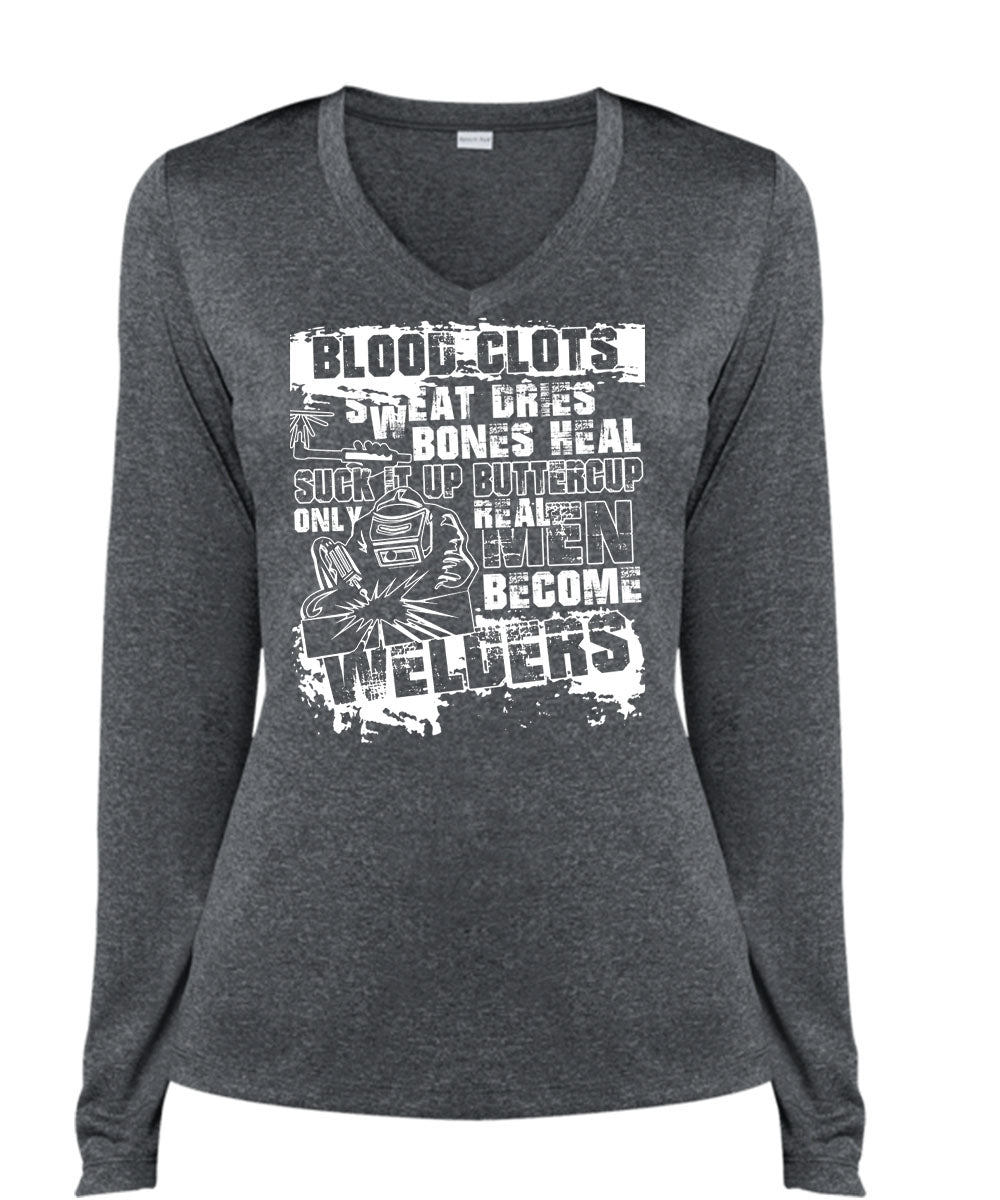 Real Men Become Welders T Shirt, Sweat Dries T Shirt, Cool Shirt (Ladies LS Heather V-Neck)
