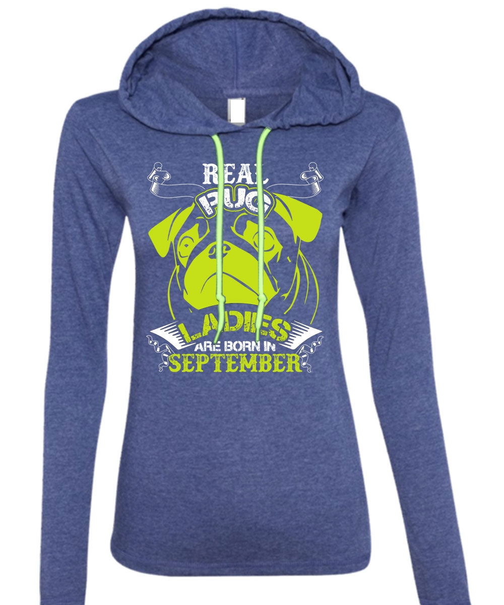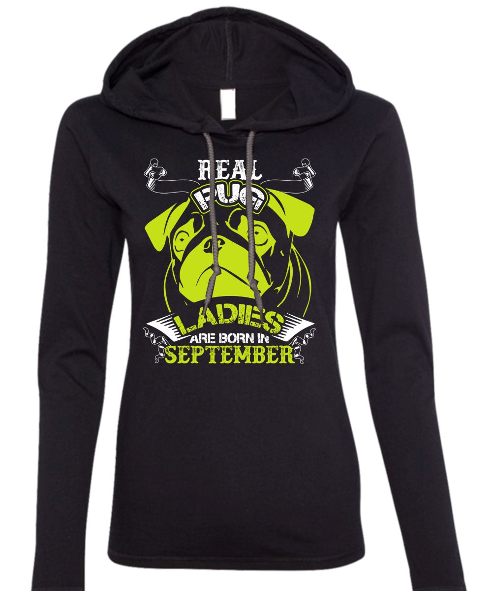 Real Pug Ladies Are Born In September T Shirt, My Favorite T Shirt (Anvil Ladies Ringspun Hooded)