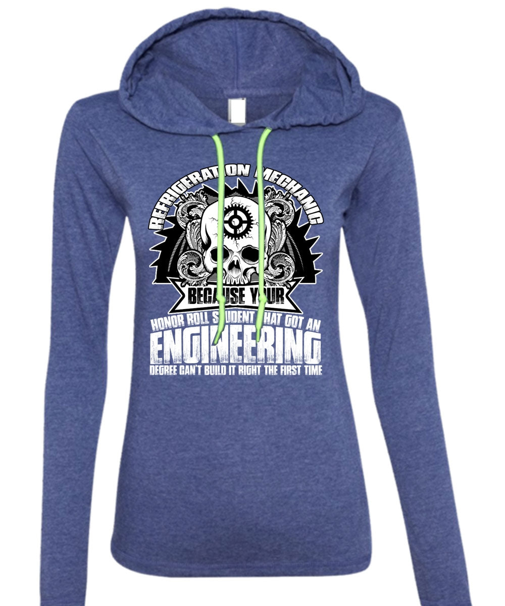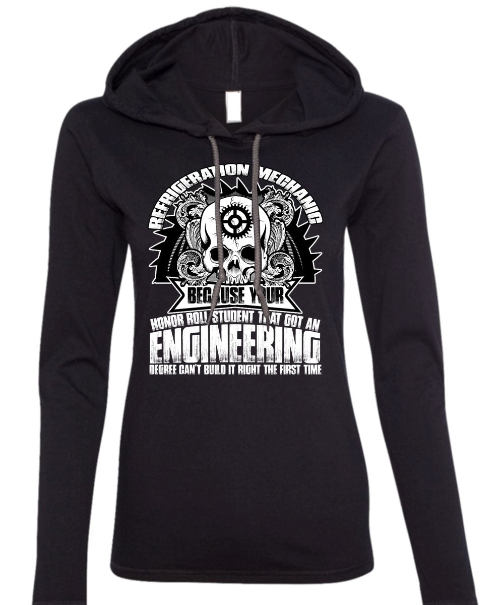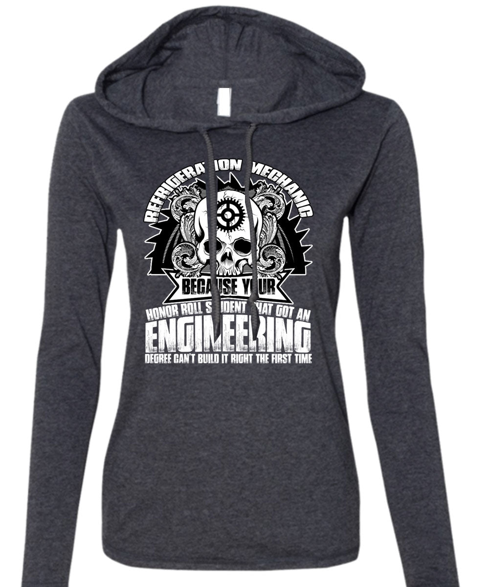 Refrigeration Mechanic T Shirt, Engineering Degree T Shirt (Anvil Ladies Ringspun Hooded)
