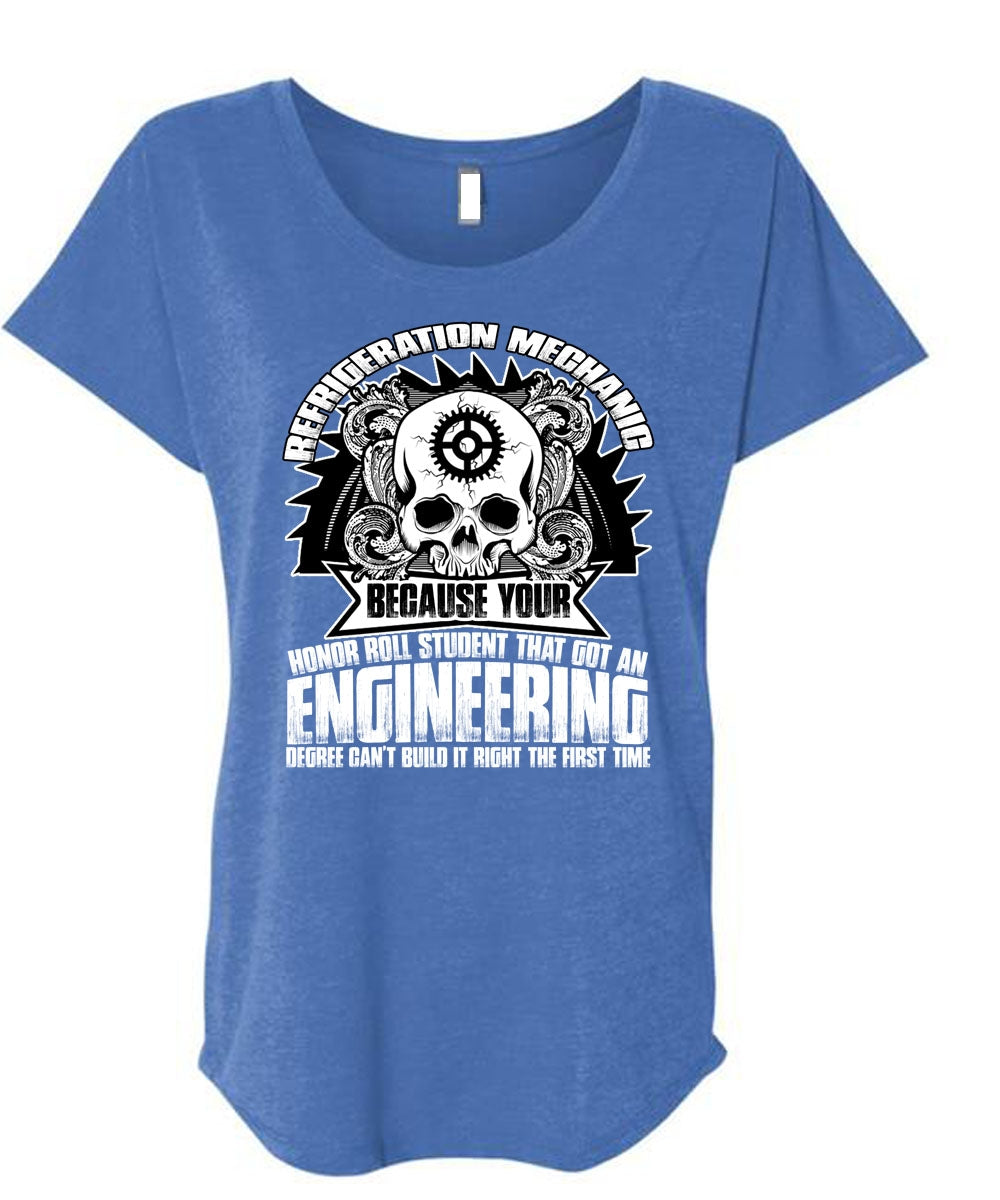 Refrigeration Mechanic T Shirt, Engineering Degree T Shirt, Cool Shirt (Ladies' Triblend Dolman Sleeve)