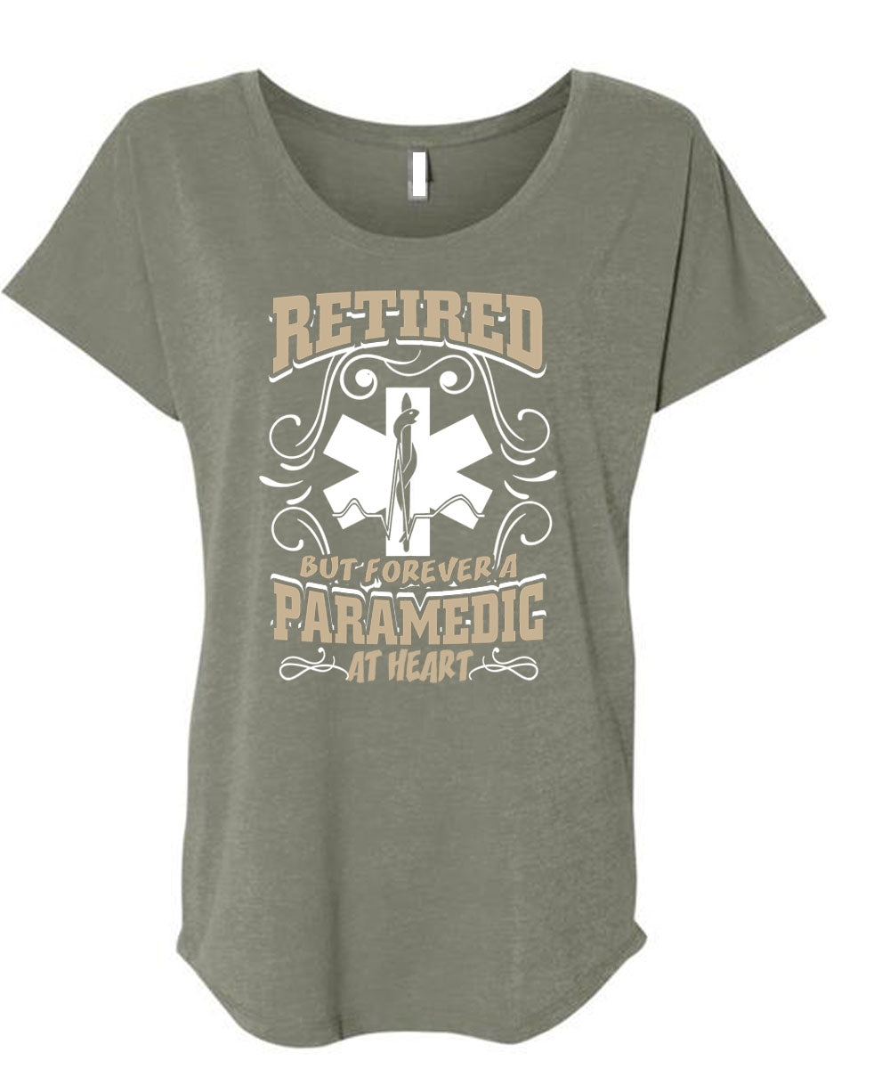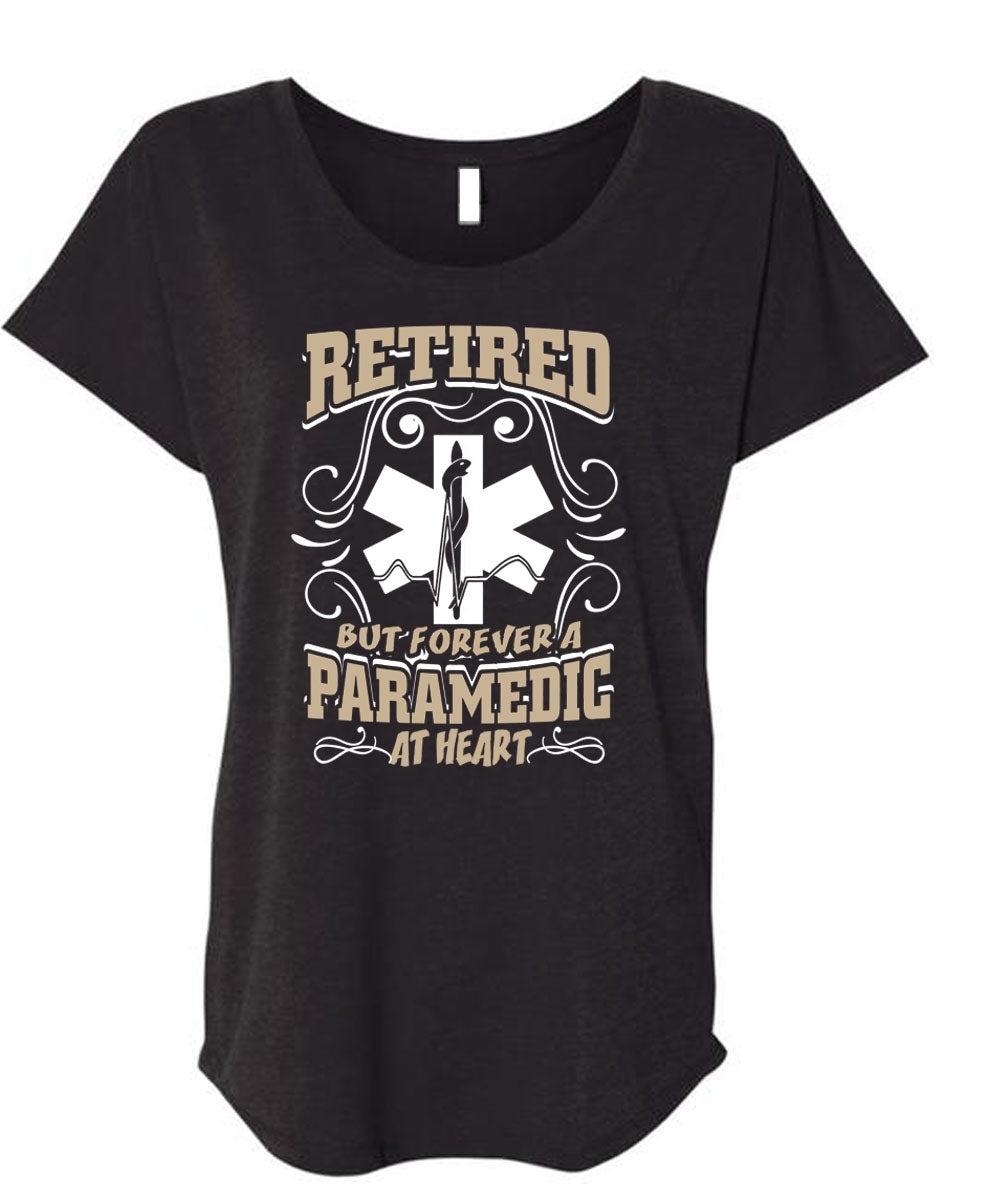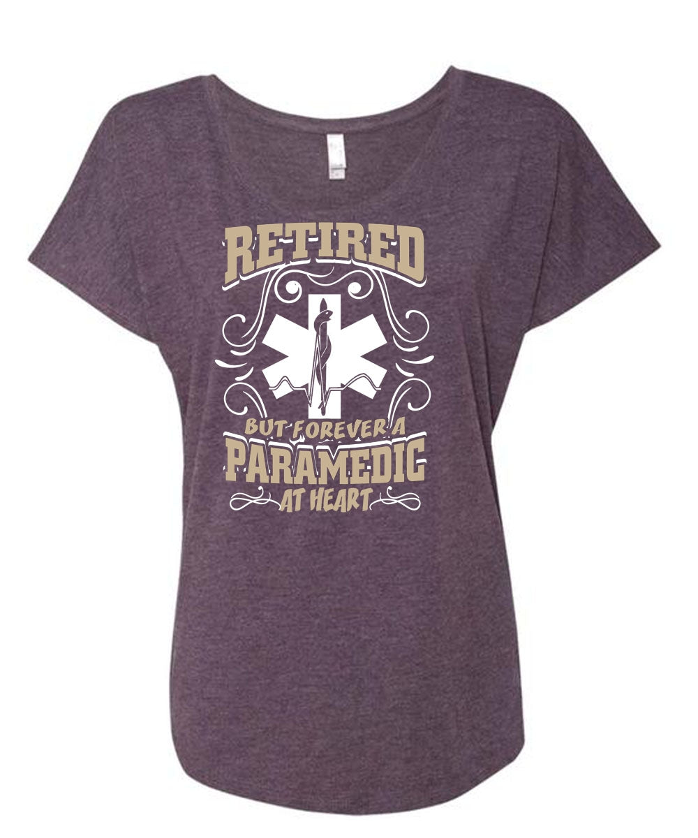 Retired But Forever A Paramedic At Heart T Shirt, Being A Paramedic T Shirt, Cool Shirt (Ladies' Triblend Dolman Sleeve)