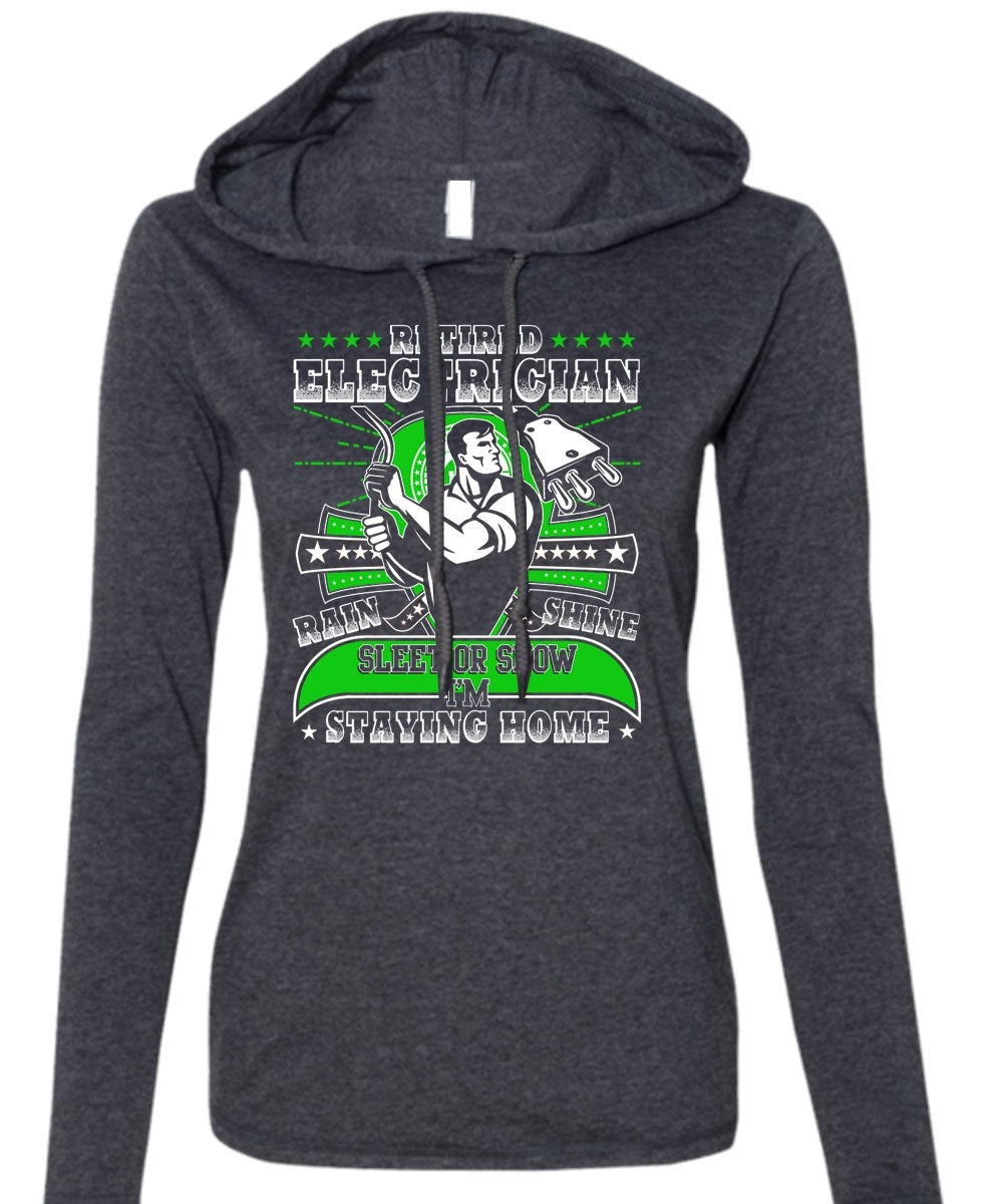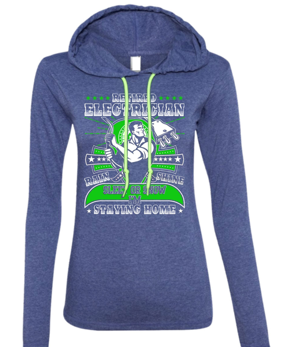Retired Electrician T Shirt, I'm Staying Home T Shirt (Anvil Ladies Ringspun Hooded)
