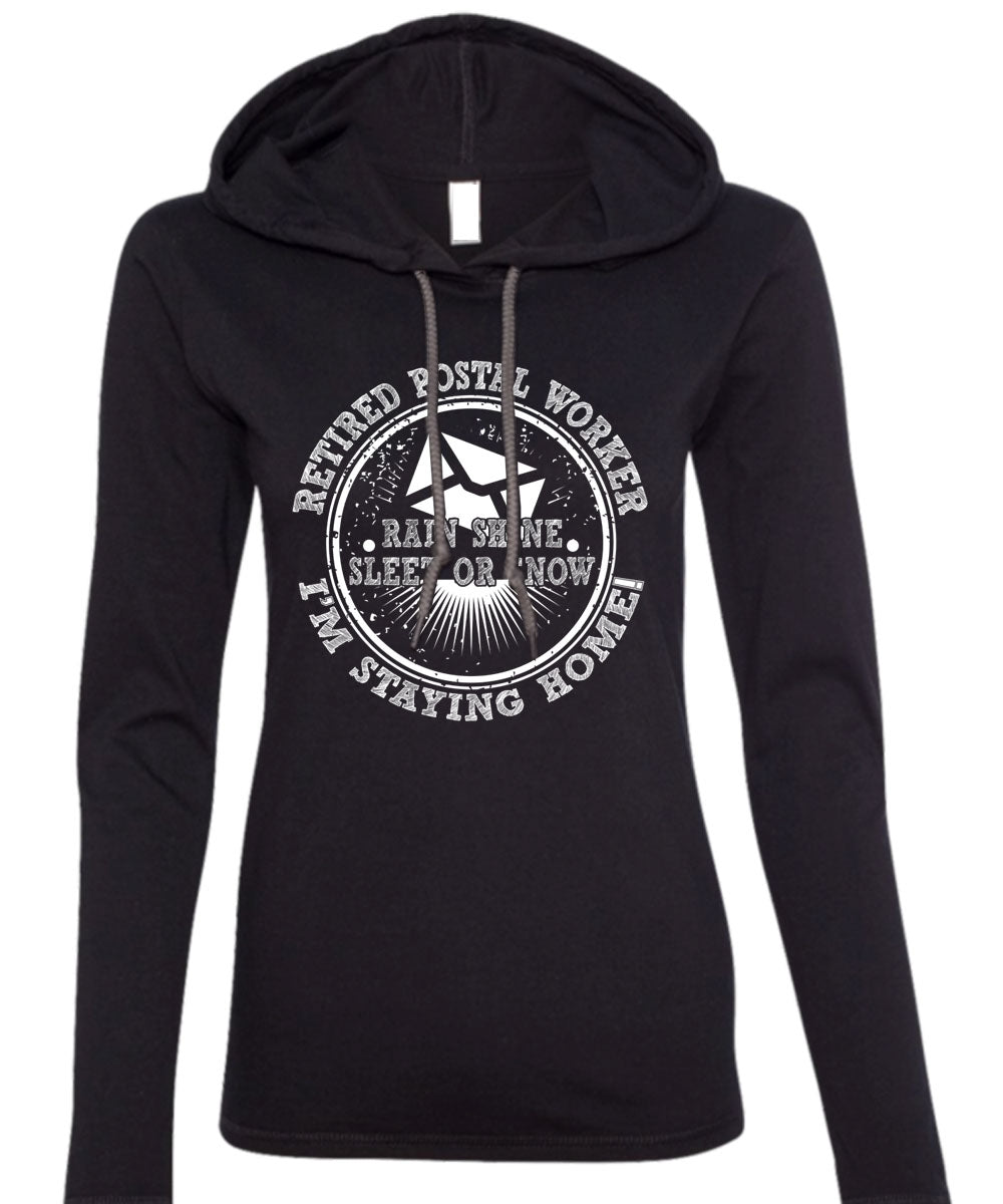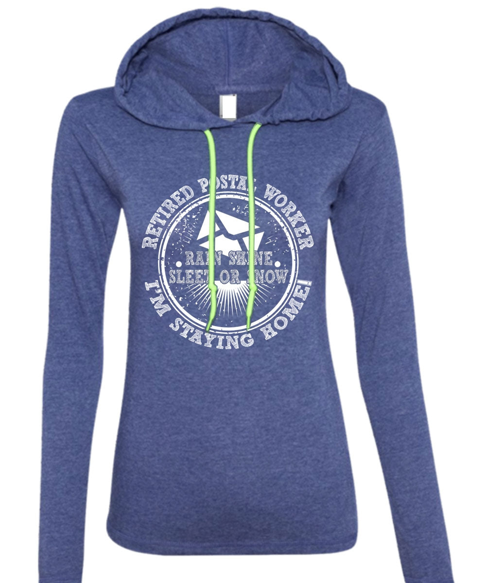Retired Postal Worker T Shirt, I'm Staying Home T Shirt (Anvil Ladies Ringspun Hooded)